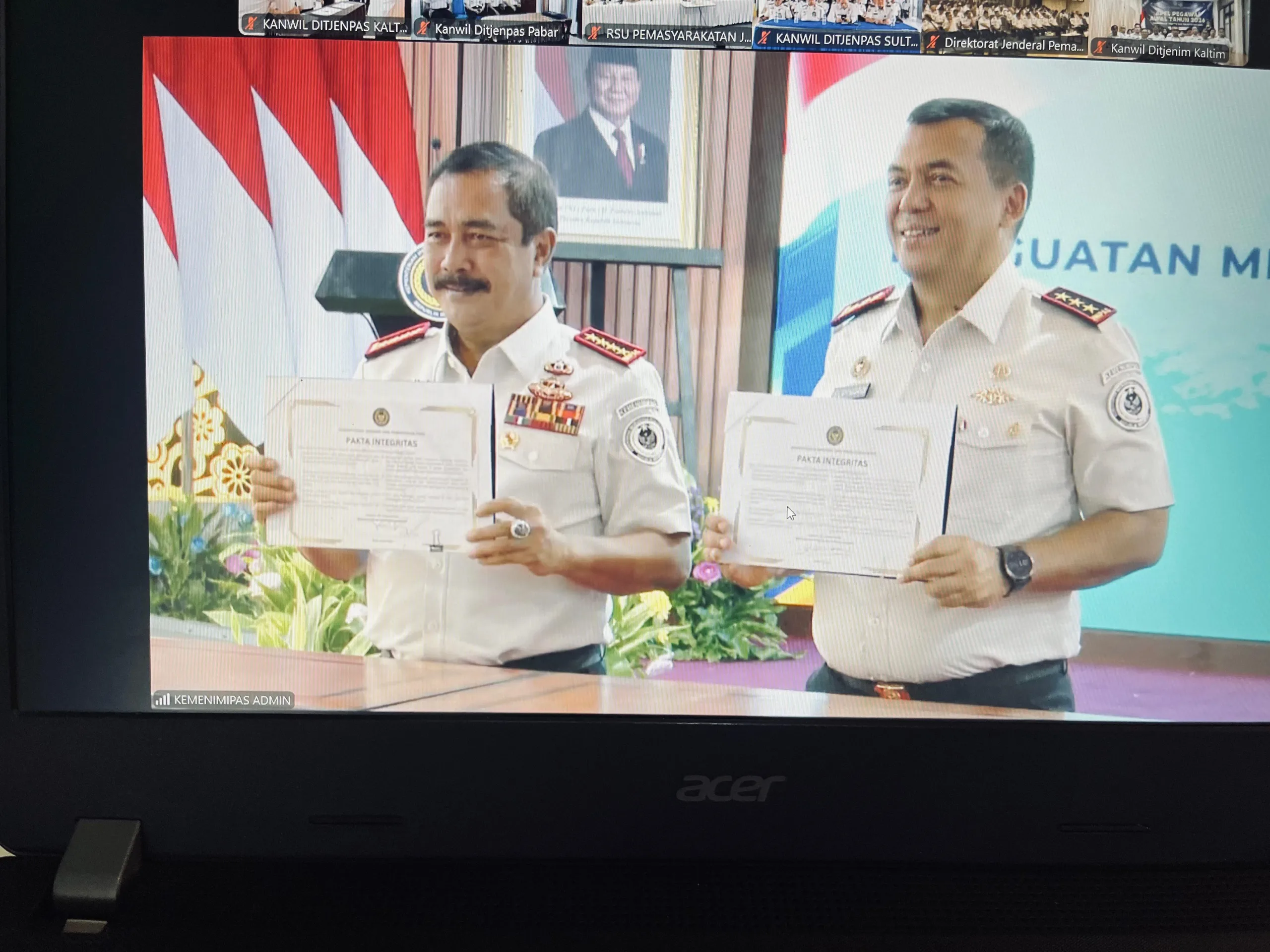 Kegiatan Apel Bersama ini juga dilakukan penandatanganan Pakta Integritas dan Perjanjian Kinerja oleh Kepala Kantor Wilayah di seluruh Indonesia yang disaksikan langsung oleh Menteri Imigrasi dan Pemasyarakatan.(LASAMBAWA).