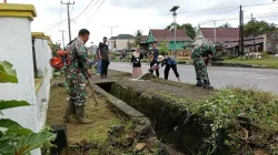 Koptu Rudi Awaluddin menyampaikan bahwa keterlibatan Babinsa dalam kegiatan gotong royong merupakan bagian dari pembinaan teritorial sekaligus upaya mendorong partisipasi warga dalam menjaga dan memanfaatkan lingkungan secara bersama.