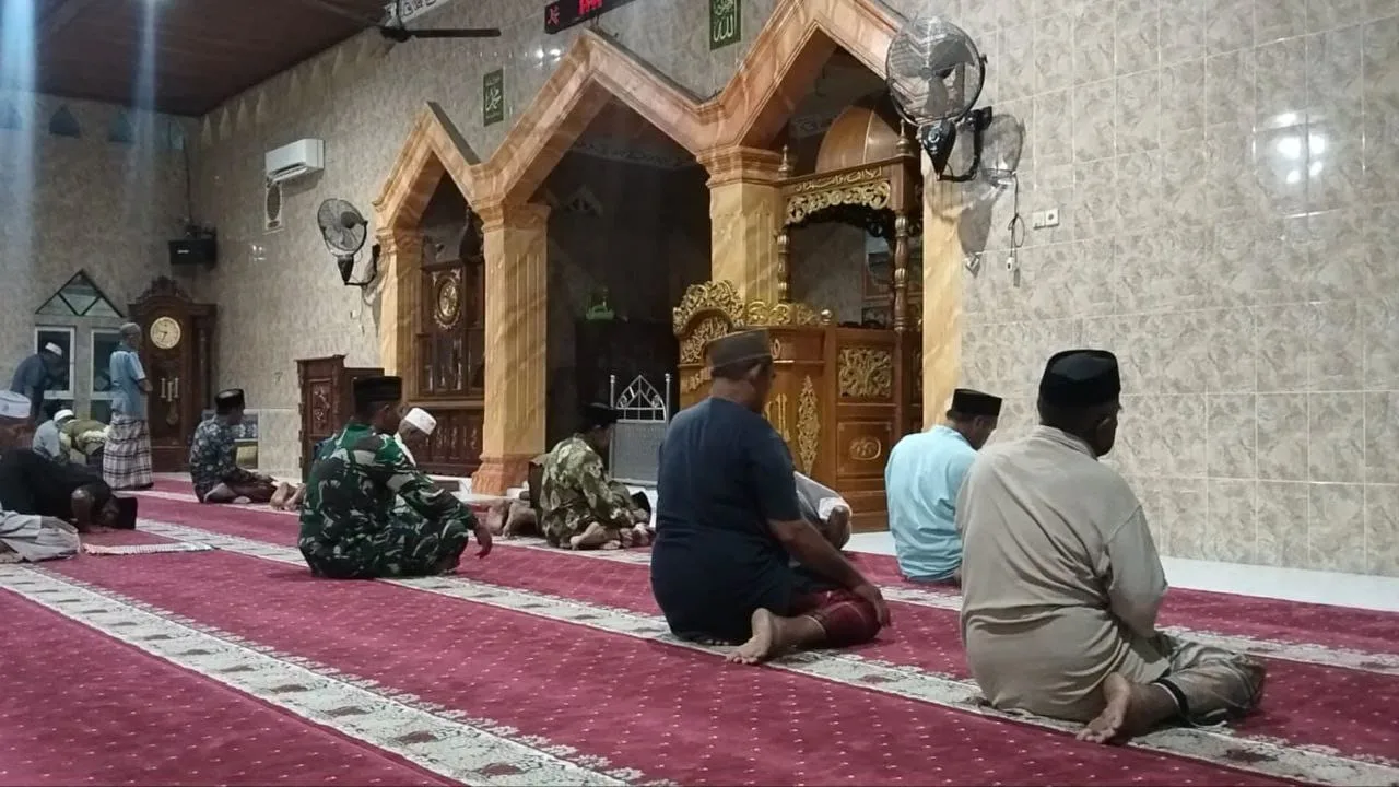 Selain melaksanakan ibadah bersama, Babinsa juga memanfaatkan momen tersebut untuk berkomunikasi langsung dengan warga terkait kondisi keamanan dan ketertiban lingkungan.
