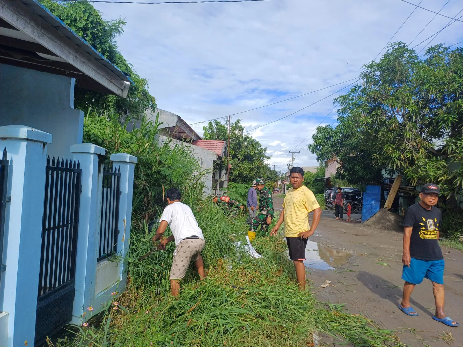 Babinsa Serda Abdul Rasyid menyampaikan bahwa kegiatan kerja bakti ini juga untuk menumbuhkan semangat kebersamaan dan gotong royong antara TNI dan masyarakat.