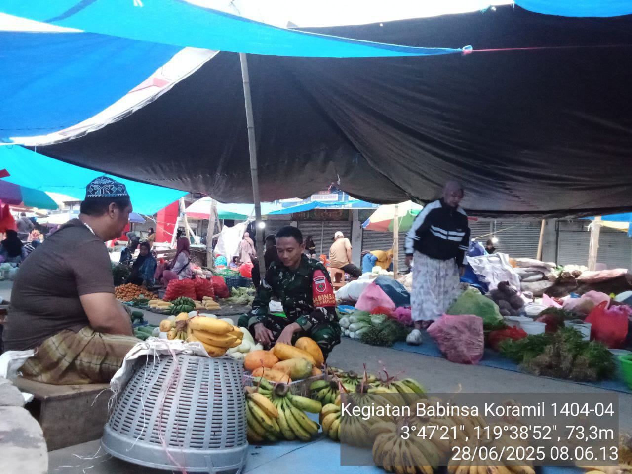 Serda Habibi Dalle menambahkan bahwa kegiatan yang dilakukannya itu sebagai bentuk dan peran setiap personel Babinsa dalam mengayomi dan menjaga kenyamanan warga masyarakat melakukan aktivitasnya jual beli di Pasar untuk memenuhi kebutuhan hidup sehari-hari.