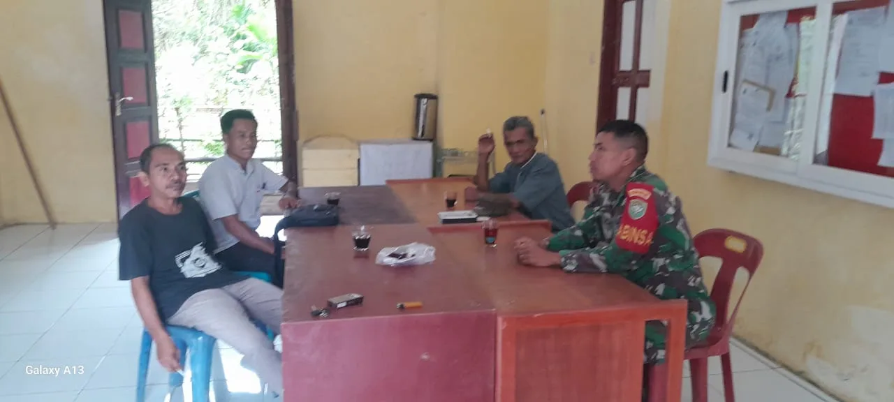 Simeulue – Sertu Mushlisin Babinsa Koramil 01/Simeulue Timur, Kodim 0115/Simeulue, Korem 012/Teuku Umar. Laksanakan kegiatan Komsos Bersama warga Desa Abail, Kecamatan Teupah Barat, Kabupaten Simeulue. Jumat (28/11/2025).