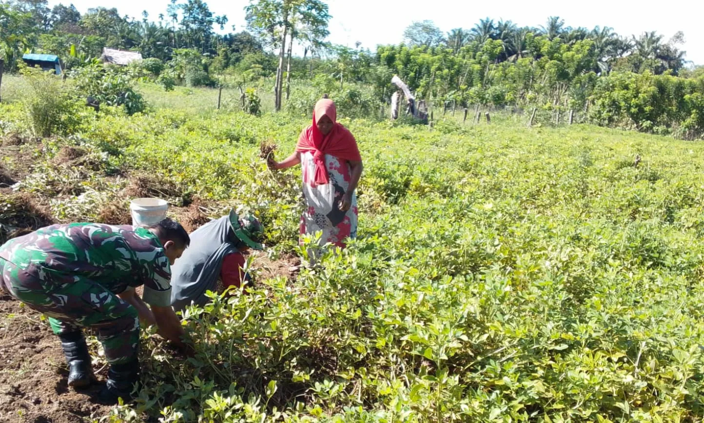 Nagan Raya – Babinsa Koramil 02/Seunagan Kodim 0116/Nara Sertu Latih Suprobo bantu petani panen kacang tanah di desa binaan Desa Pante Cermin Kecamatan Seunagan Kabupaten Nagan Raya,Selasa (07/04/2026).