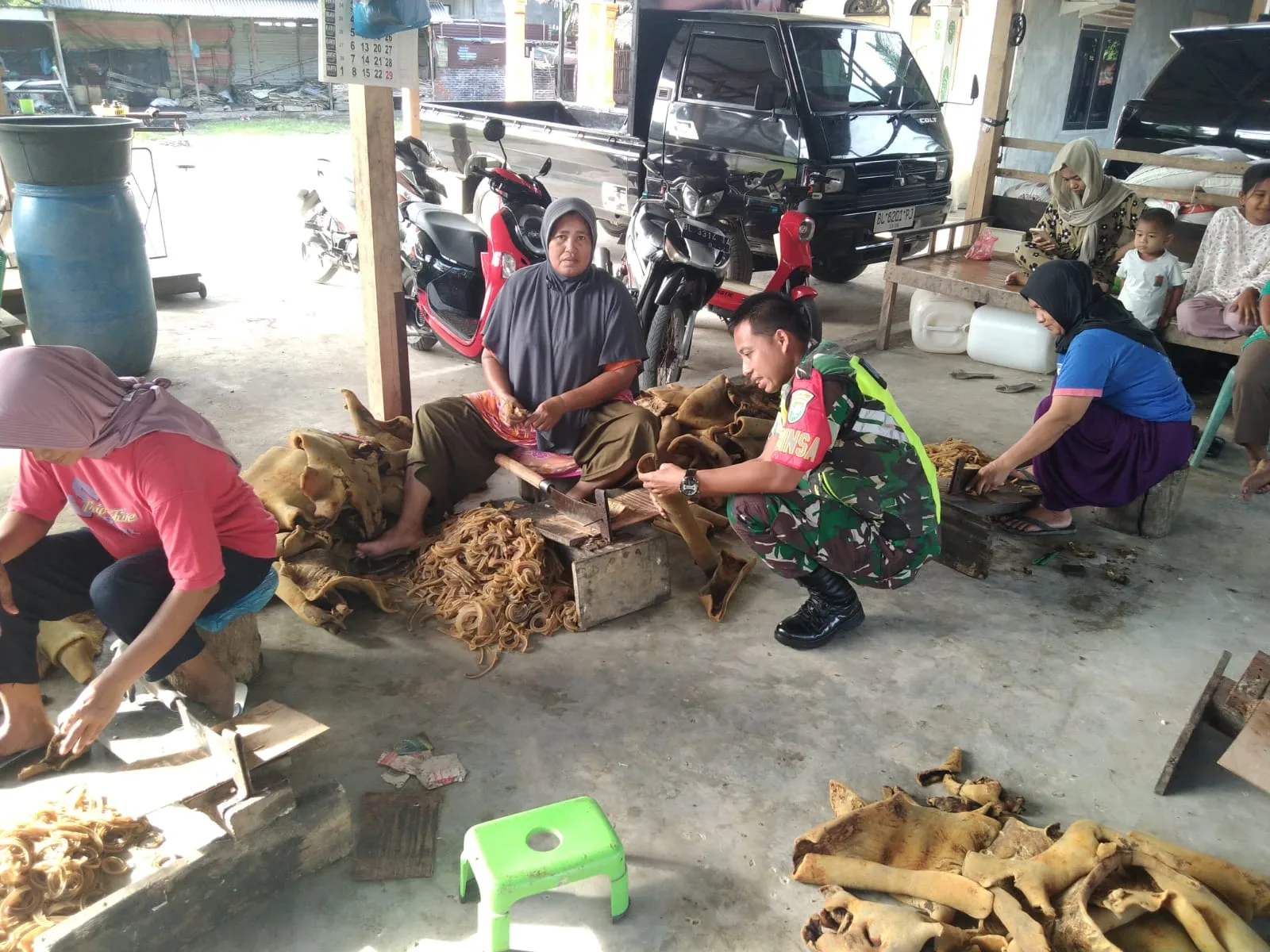 Dalam kesempatan itu, Serda Dedi turut membantu para pekerja mulai dari proses pemotongan hingga penjemuran kerupuk kulit. Menurutnya, pendampingan seperti ini bukan hanya bentuk dukungan terhadap usaha mikro masyarakat, tetapi juga menjadi sarana mempererat komunikasi sosial di wilayah binaan. Kami hadir di tengah masyarakat bukan hanya dalam kegiatan keamanan, tapi juga dalam mendukung kegiatan ekonomi rakyat. ujar Serda Dedi.