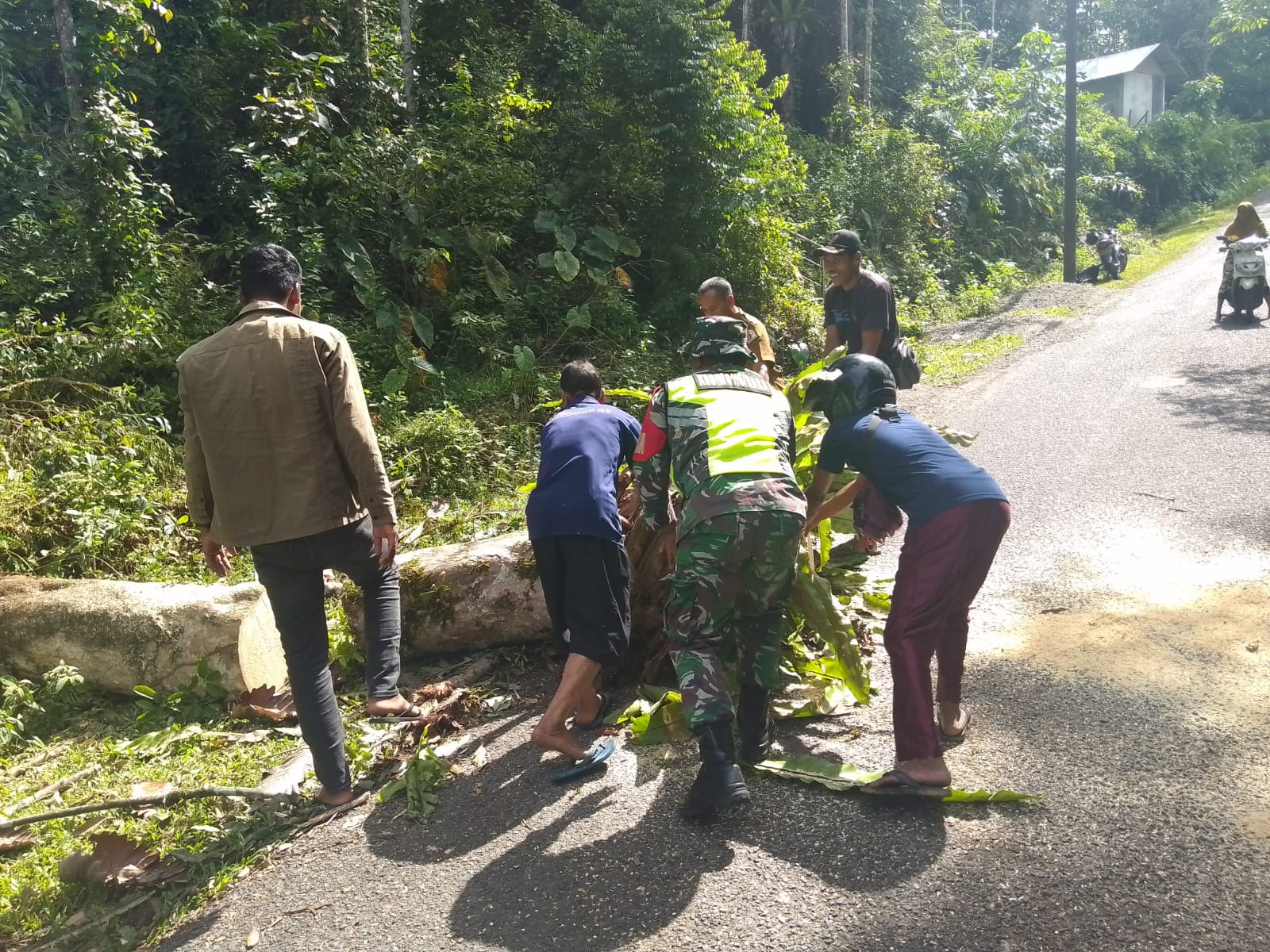 selain itu dari warga desa setempat yang di wakili kepala desa Sdr, Bantalidan menyampaikan terima kasih kepada Babinsa yang telah peduli dalam membantu proses pembersihan jalan desa. Semoga keakraban dan kekompakan seperti sekarang ini dapat terus diterapkan kepada penerus generasi muda kita.” Pungkasnya.
