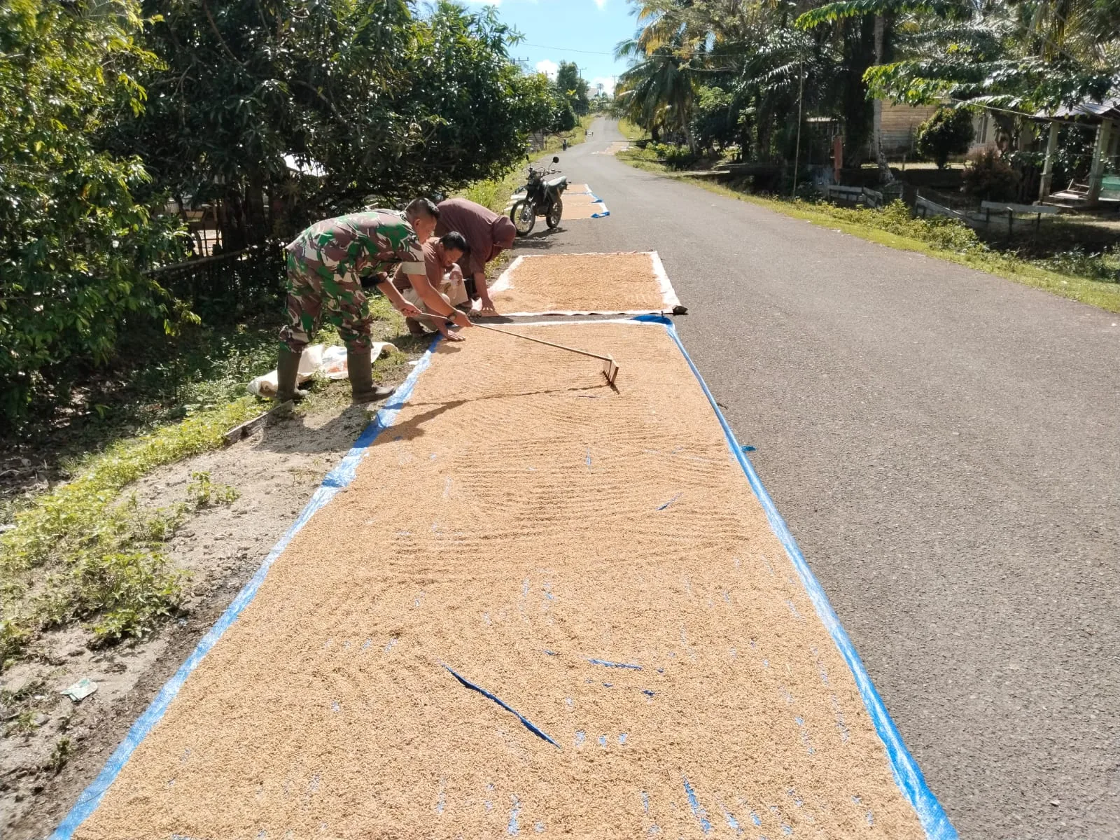 Koptu Ariandi Babinsa Koramil 06/Teluk Dalam, Kodim 0115/Simeulue, Korem 012/Teuku Umar. Melaksanakan komsos membantu warga menjemur padi hasil panen dari sawah mereka sendiri, Kegiatan ini biasanya dilakukan sebelum di bawa ke tempat penggilingan untuk di jadikan beras di Desa Muara Aman, Kecamatan Teluk Dalam, Kabupaten Simeulue. Minggu (03/01/2026).