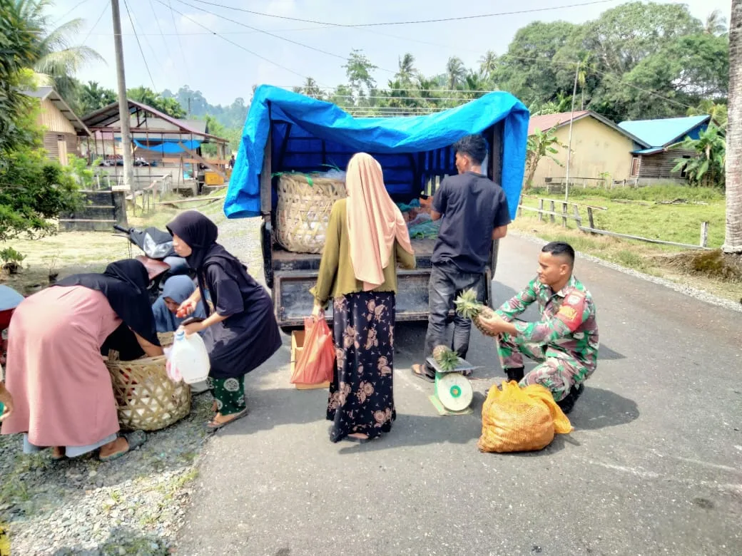 Babinsa Koramil 08/Alafan Sertu M. Angga kausar melaksanakan kegiatan komsos dengan dengan pedagang sayuran keliling kampung dalam hal ini Babinsa menekankan perlunya dagangan yang berkualitas jangan ada yang merugikan masyarakat dengan adanya produk yang kadaluarsa dan busuk di Desa Serafon, Kecamatan Alafan, Kabupaten Simeulue. Kamis (01/01/2026).