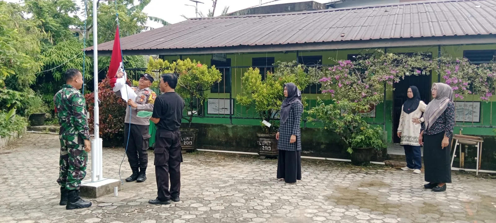 Tarakan – Dalam rangka menyambut HUT PGRI ke-80 tahun,Peltu Gilar Buana Babinsa Koramil 0907/02 Tarteng melatih perwakilan para guru yang melaksanakan upacara pengibaran bendera di SDN 001 Jl.Hang Tuah,Kel.Selumit