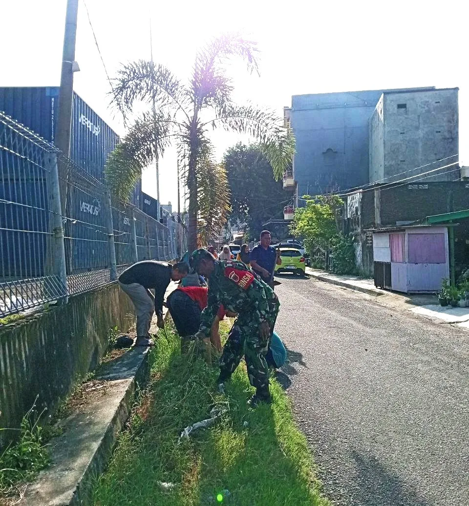 Kegiatan kerja bakti ini dilaksanakan sebagai bentuk kepedulian terhadap kebersihan lingkungan sekaligus mempererat kebersamaan antara aparat kelurahan, Babinsa, dan masyarakat.