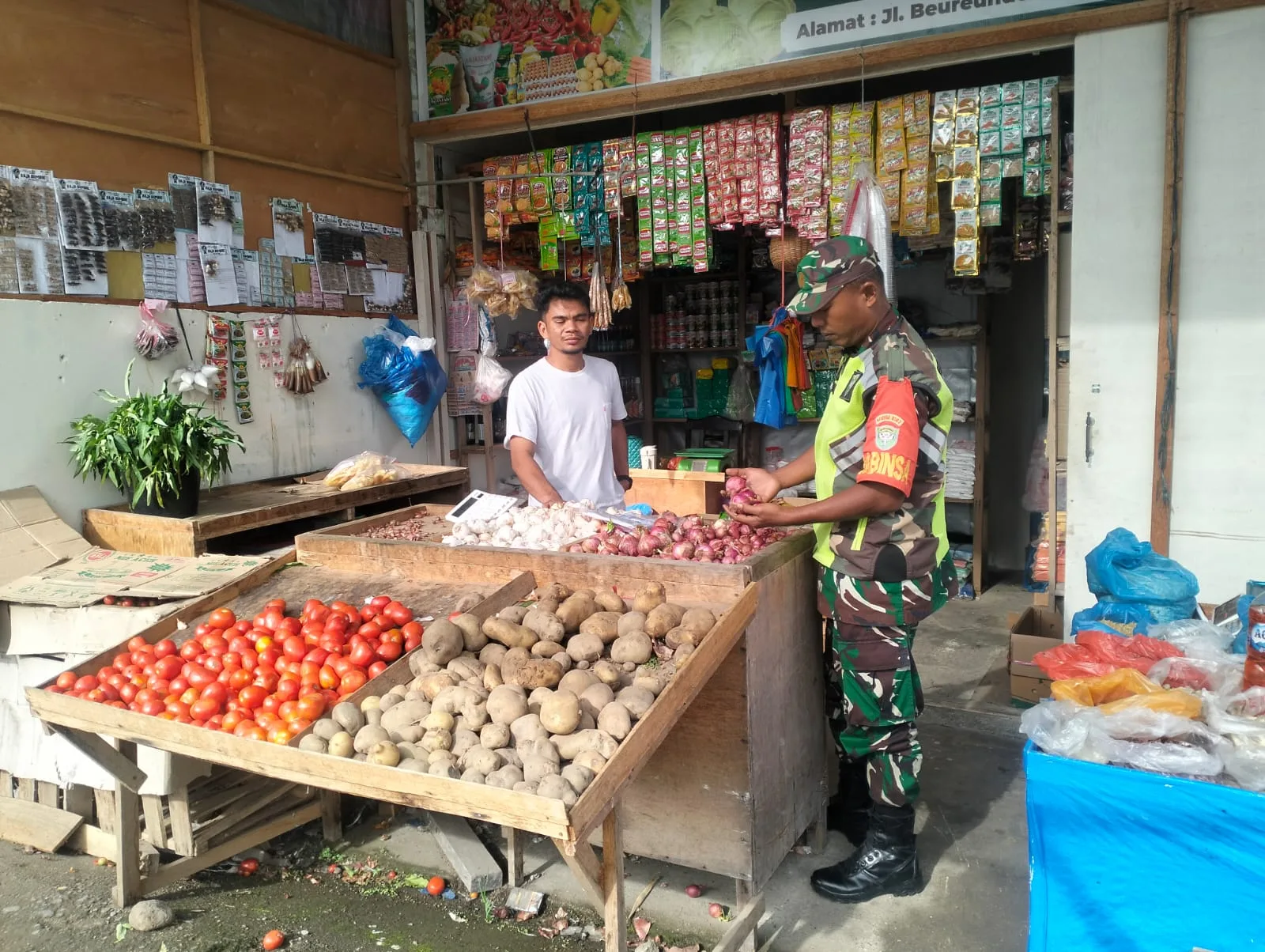 Pidie – Dalam rangka menjaga stabilitas harga bahan pokok dan mendukung ketahanan pangan di wilayah binaannya, Babinsa Koramil 16/Tangse Kodim 0102/Pidie, Serda Sujatmiko, melaksanakan kegiatan pengecekan dan pemantauan harga sembako di pasar tradisional Kecamatan Tangse, Kabupaten Pidie, Jumat (14/11/2025).