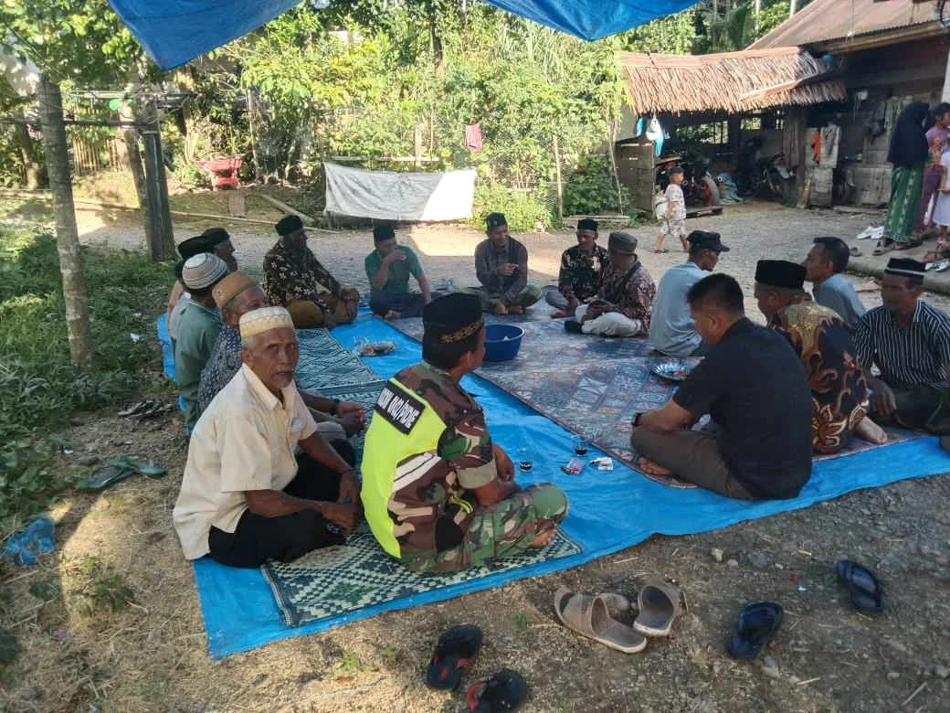 Pidie — Sebagai bentuk empati dan kepedulian terhadap warga binaan, Serma Abu Bakar, Babinsa Koramil 17/Geumpang Kodim 0102/Pidie, menghadiri acara takziah di Desa Pucok, Kecamatan Geumpang, Kabupaten Pidie.