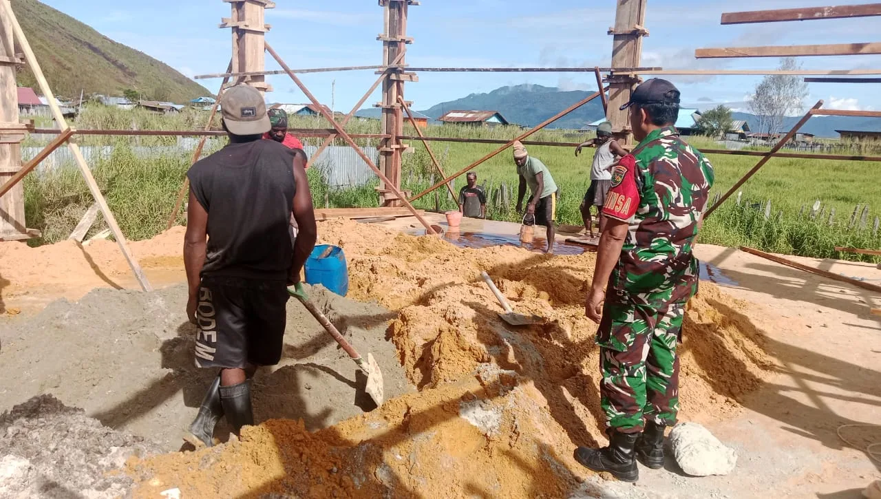 Enarotali – Dalam rangka menjaga situasi tetap aman dan menjalin kedekatan dengan masyarakat, Babinsa Koramil 1703-01/Enarotali melaksanakan kegiatan monitoring wilayah binaan serta komunikasi sosial (Komsos) bersama para pekerja bangunan di salah satu titik pembangunan di wilayah Kampung Awabutu, Distrik Paniai Timur, Kabupaten Paniai, Senin (29/12/2015).