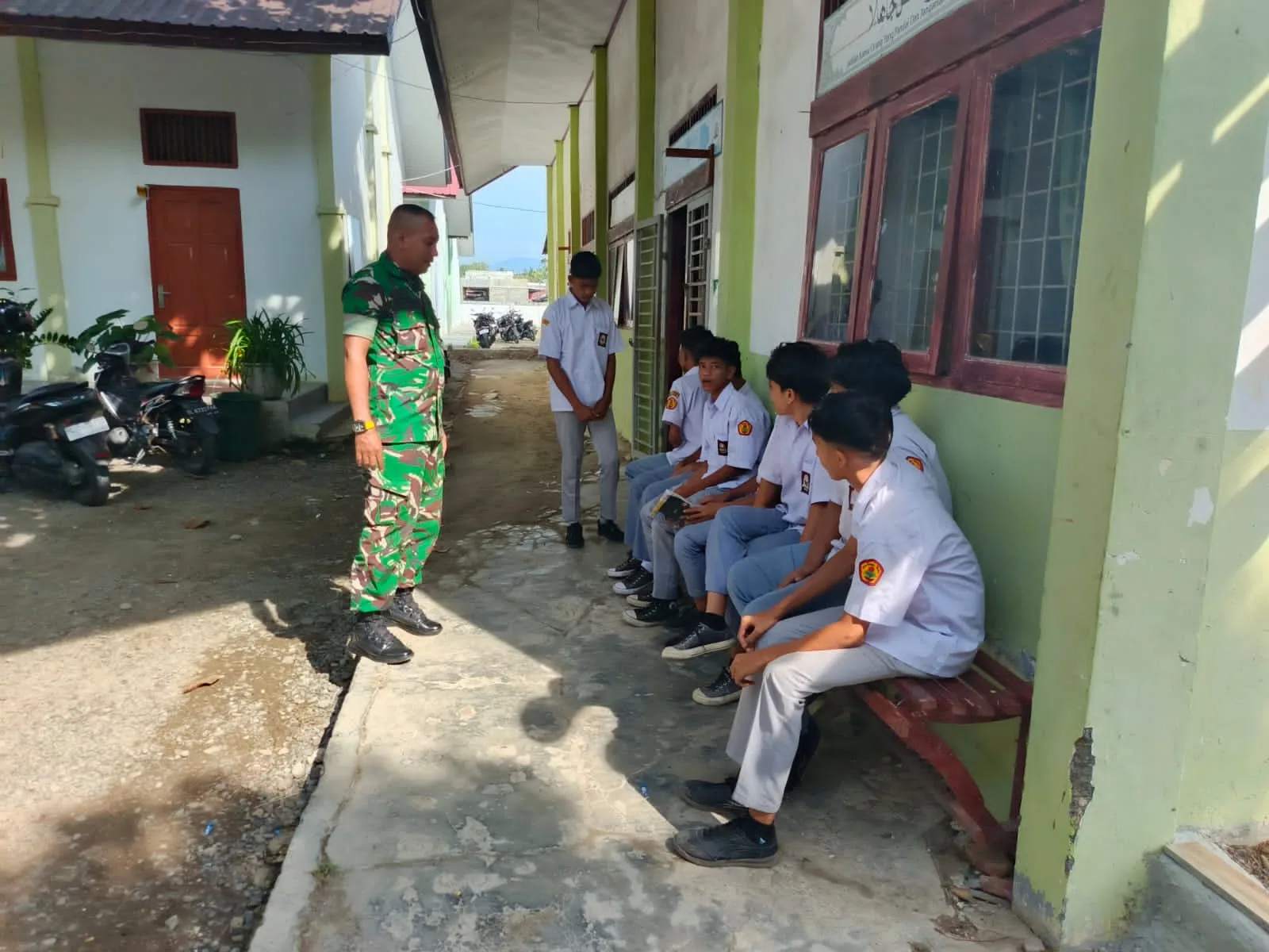 Kegiatan tersebut dikemas dalam suasana santai dan penuh keakraban. Melalui dialog interaktif, Serda Efendi memberikan wawasan kebangsaan kepada para siswa, sekaligus menyosialisasikan peluang rekrutmen menjadi prajurit TNI sebagai salah satu bentuk pengabdian kepada negara.