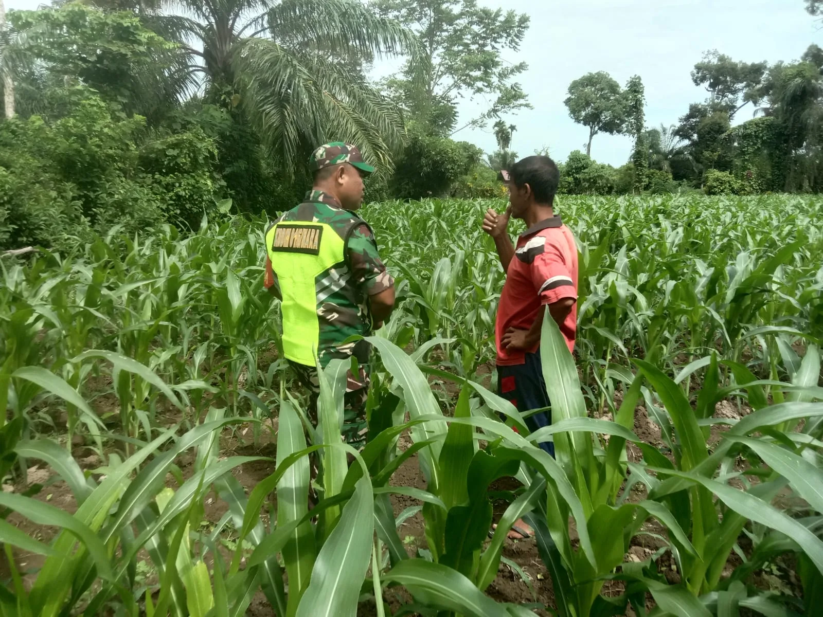 Dalam kunjungannya, Babinsa memantau kondisi pertumbuhan tanaman jagung, memberikan masukan terkait perawatan tanaman, serta mendorong penerapan teknik budidaya yang baik dan berkelanjutan. Ia juga berdialog langsung dengan petani untuk mengetahui kendala yang dihadapi selama masa tanam, seperti hama, irigasi, maupun ketersediaan pupuk.
