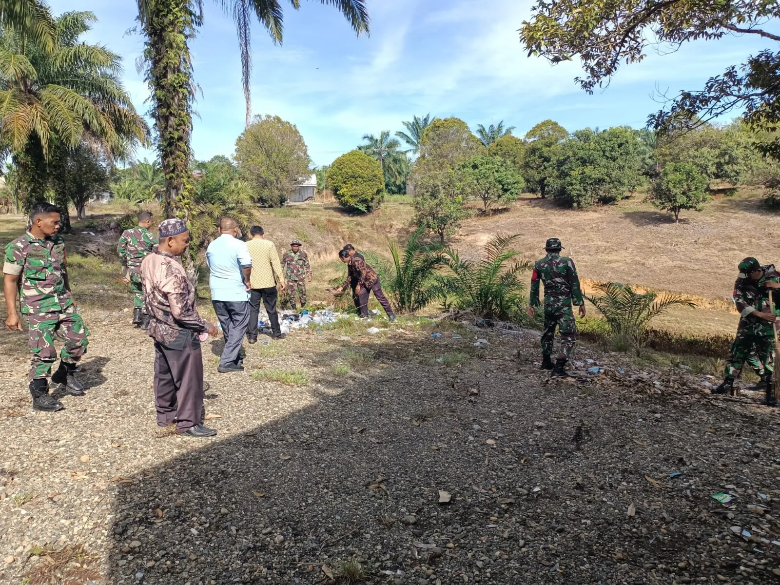 Babinsa Pos Ramil Tadu Raya Melaksanakan Gotong Royong Bersama Aparatur dan masyarakat
