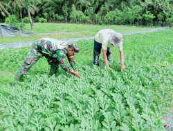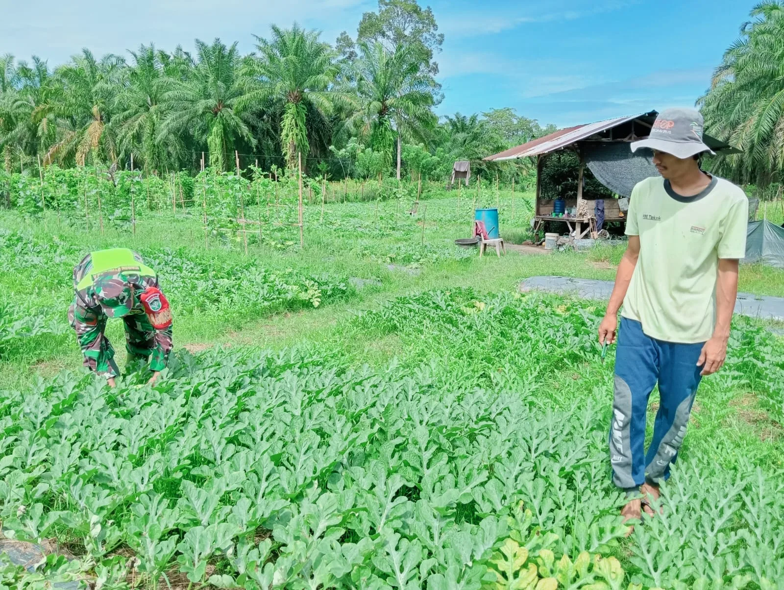 TRIPA MAKMUR,, Kopka Nur Andika Babinsa Posramil Tripa Makmur,Nagan Raya Melaksanakan pendampingan merawat tanaman Semangka milik sdr Hanif di desa Neubok Ye Pk kec.Tripa Makmur Kab Nagan Raya.Di lahan yg luas nya kurang lebih 3 rante tersebut menjadi simbol nyata kebersamaan TNI dan Rakyat dalam mendukung ketahanan pangan. Senin 09 Februari 2026