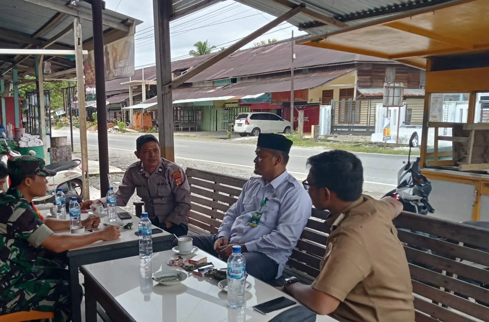 Babinsa Koramil 03/ST kodim 0116/ Nagan raya, Serda Dwiyanto melaksanakan Komsos dengan masyarakat di Warung kopi milik bapak Amrilah di desa Blang panyang kecamatan Senagan Timur, kabupaten Nagan raya, Rabu (29/04/2026).