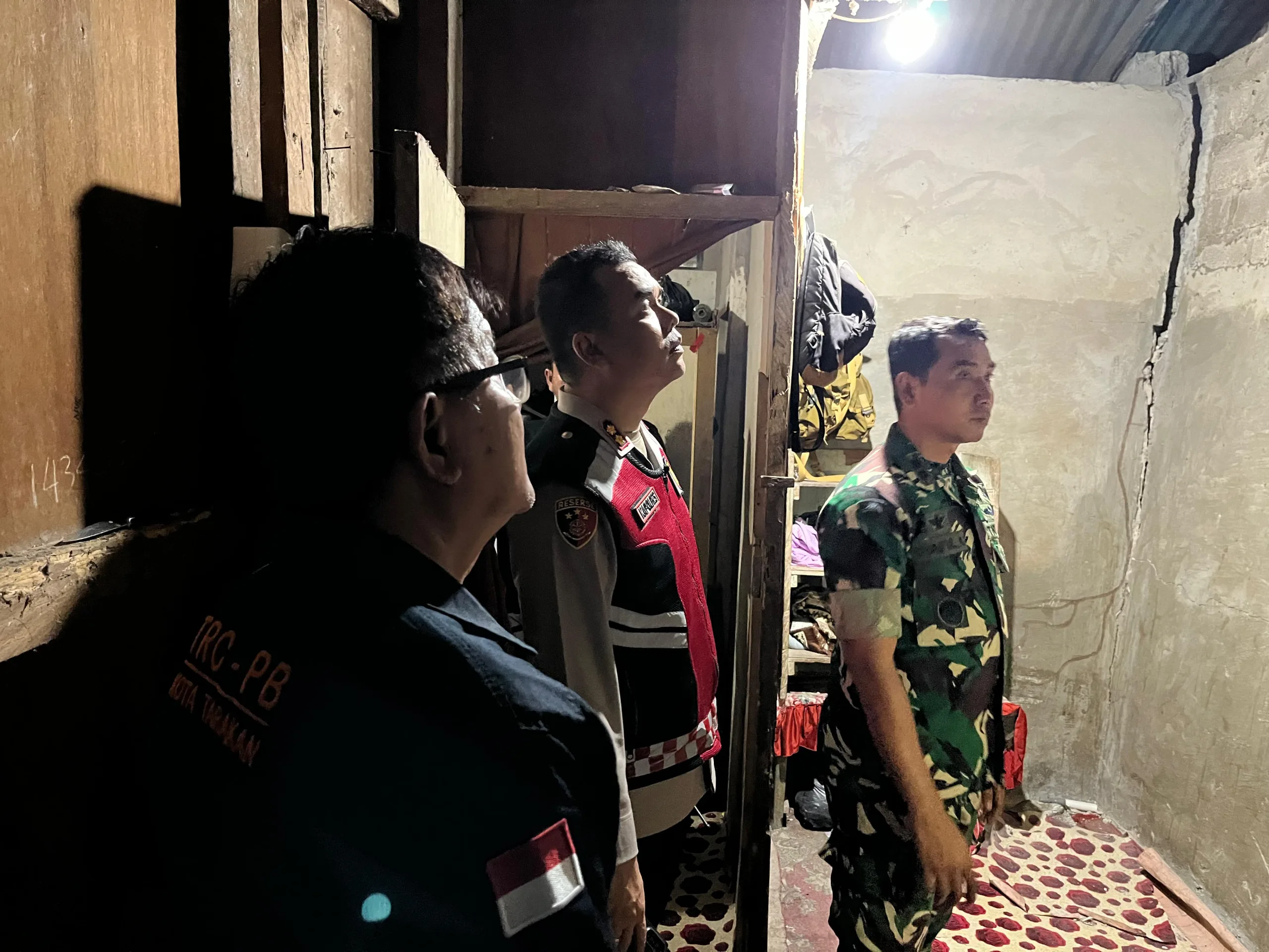 Tarakan – Komandan Kodim (Dandim) 0907/Trk Letkol Inf Syaiful Arif,S.Sos.,M.Han beserta Kapolres AKBP Erwin S.Manik dan Kepala BPBD Tarakan Bapak Yansen langsung melihat kondisi bangunan rusak parah akibat gempa magnitudo 4,4 di Kota Tarakan,Sabtu Malam(09/ /9202