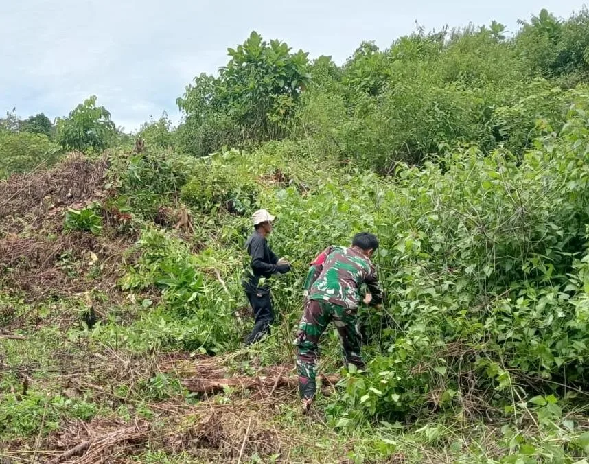 Simeulue –  Sertu Joy Dharsa Babinsa Koramil 03/Teupah Selatan, Kodim 0115/Sml, Korem 012/Tu, melaksanakan Gotong Royong Bersama, Babinsa Dan Warga di Desa Kebun Baru, Kecamatan Teupah Tengah Kabupaten Simeulue. Kamis (03/04/2026).