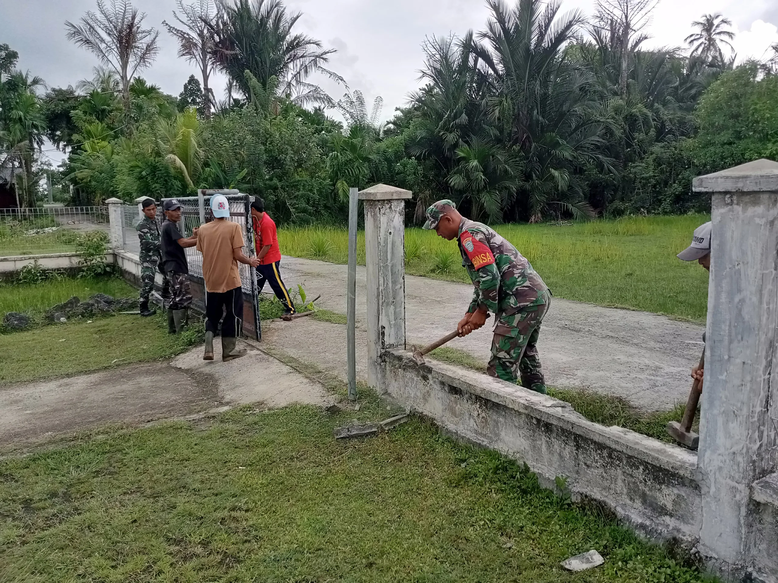 Simeulue – Koptu A. Rison Babinsa Posramil Teupah Barat, Kodim 0115/Sml, Korem 012/Tu, melaksanakan Gotong Royong Bersama, Babinsa Dan Warga di Desa Bulu Hadik, Kecamatan Teluk Dalam, Kabupaten Simeulue. Selasa (14/04/2026).