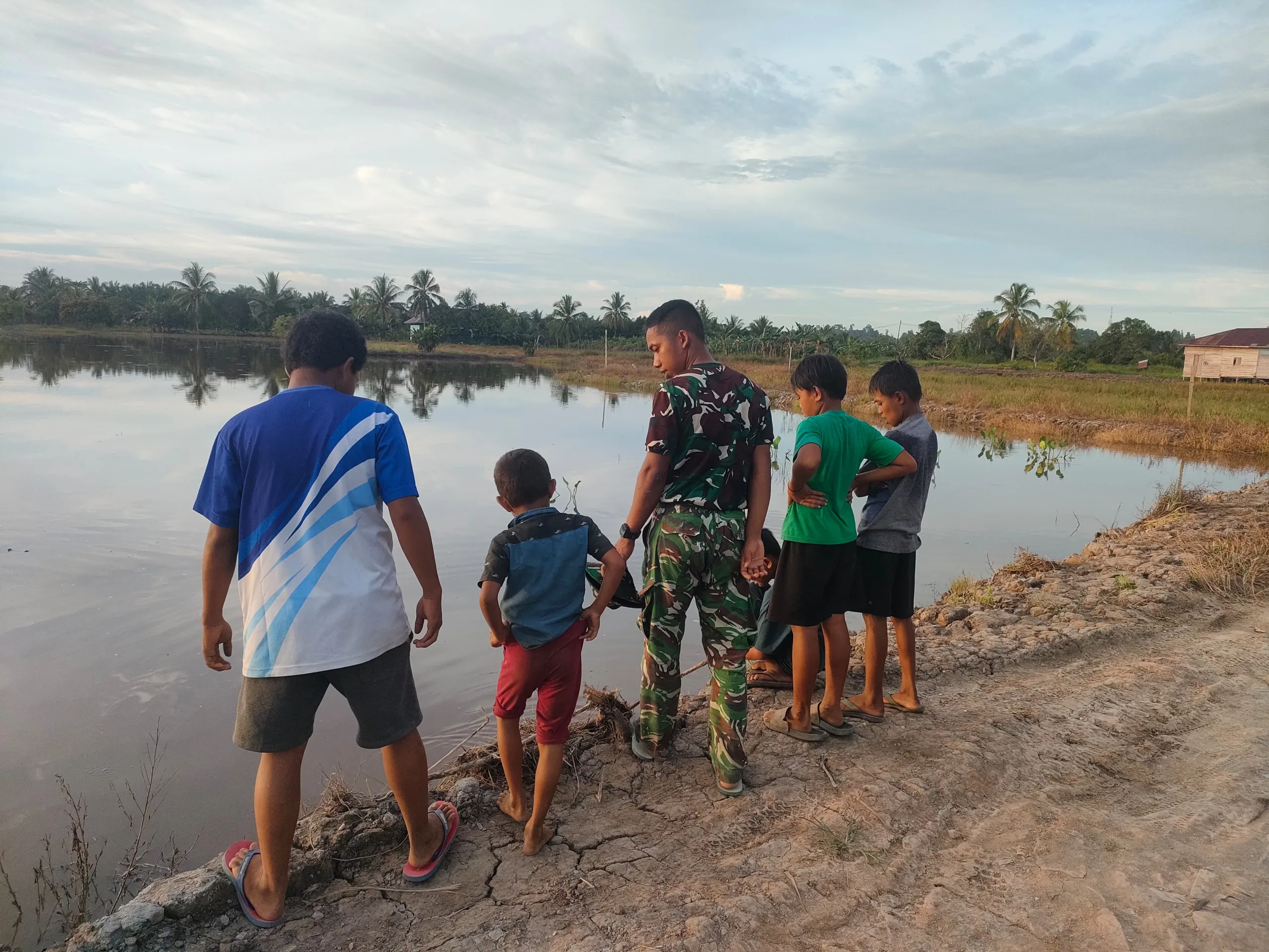 Bulungan – Disela waktu istirahat, personel Satgas TMMD dari Kodim 0903/Bulungan memanfaatkan momen santai dengan memancing dan bersenda gurau bersama anak-anak di wilayah Lubuk Manis, Desa Salimbatu, Kabupaten Bulungan. Suasana penuh canda dan tawa terlihat jelas, menjadi pelepas lelah setelah seharian mengerjakan sasaran fisik program TMMD, Rabu (18/02).