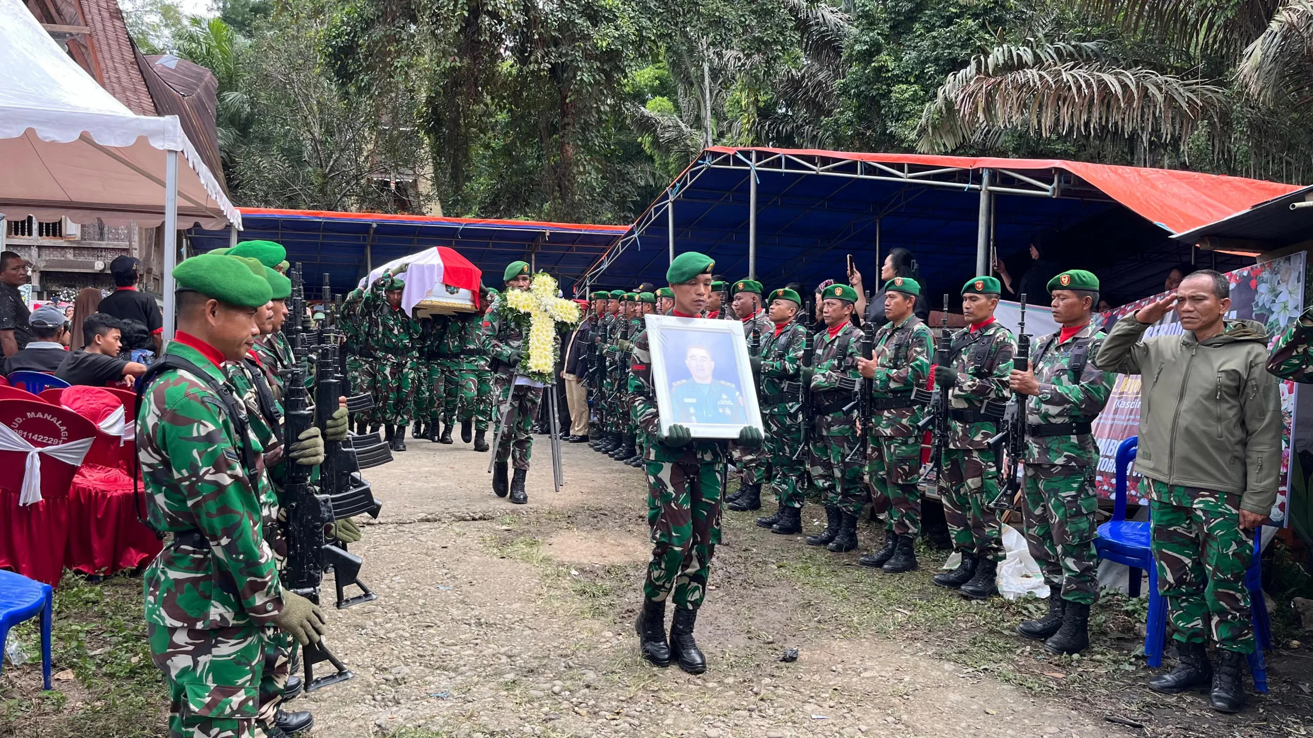 Upacara pemakaman militer berlangsung dengan tertib dan penuh penghormatan, sebagai bentuk penghargaan terakhir kepada prajurit terbaik bangsa yang telah mengabdikan dirinya kepada Negara Kesatuan Republik Indonesia.
