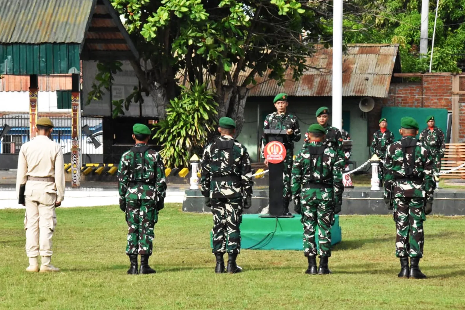 ”Pastikan selalu bendera Merah Putih berkibar tegak di wilayah tugas kalian, dan pastikan tidak ada sejengkal pun tanah air yang digoyahkan oleh kepentingan pihak lain yang bertentangan dengan Pancasila”. tegasnya.