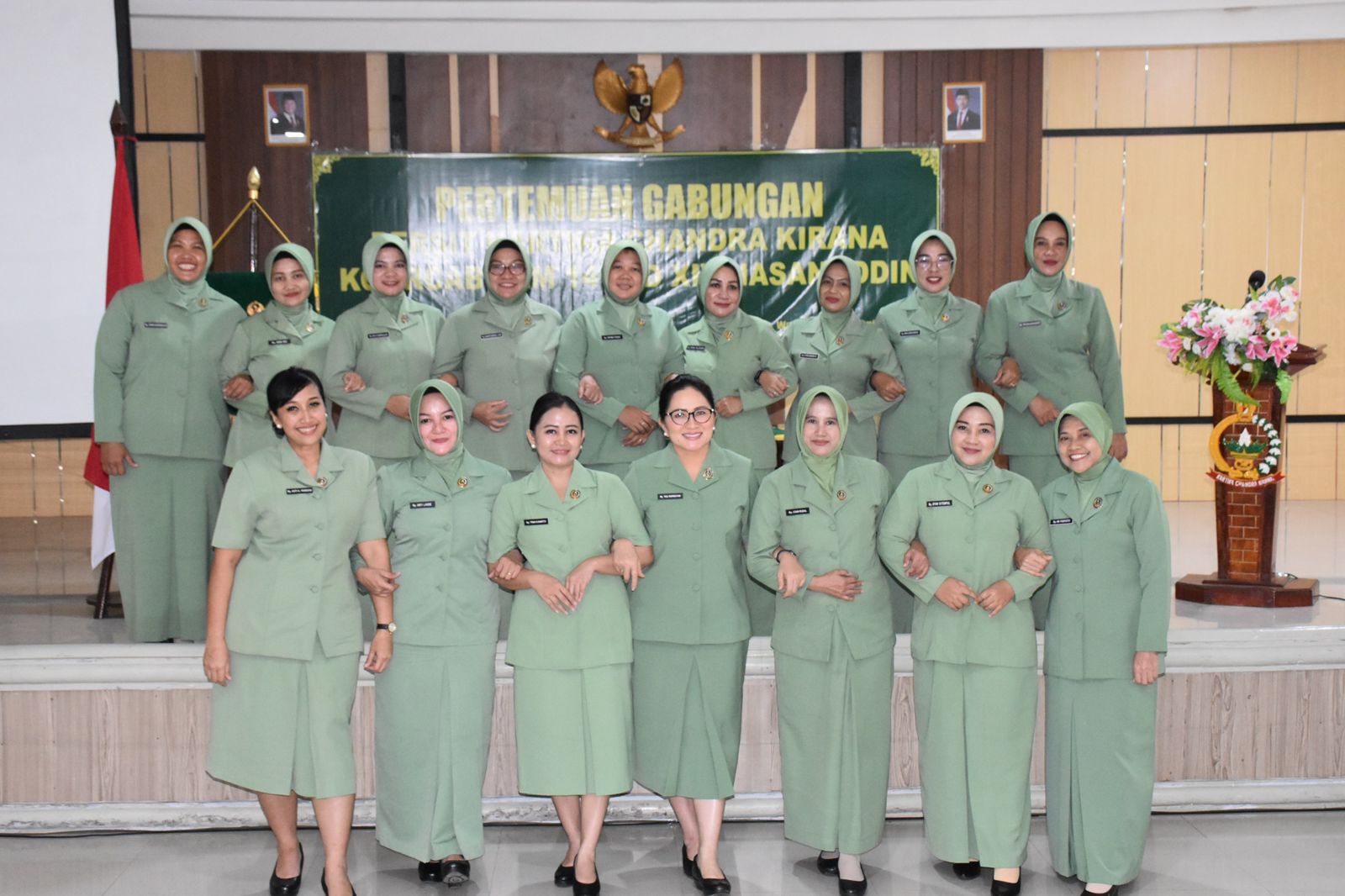 Watampone – Persit KCK Koorcab Rem 141 PD XIV/Hasanuddin menyelenggarakan Pertemuan Gabungan Persit Kartika Candra Kirana Sejajaran Koorcab Rem 141 PD XIV/Hasanuddin, yang dihadiri Danrem 141/Tp Brigjen TNI Andre Clift Rumbayan, S.Sos., M.M. selaku Pembina Persit Korem, bertempat di Aula Jend Sudirman Makorem 141/Tp, Kamis (12/06/2025)