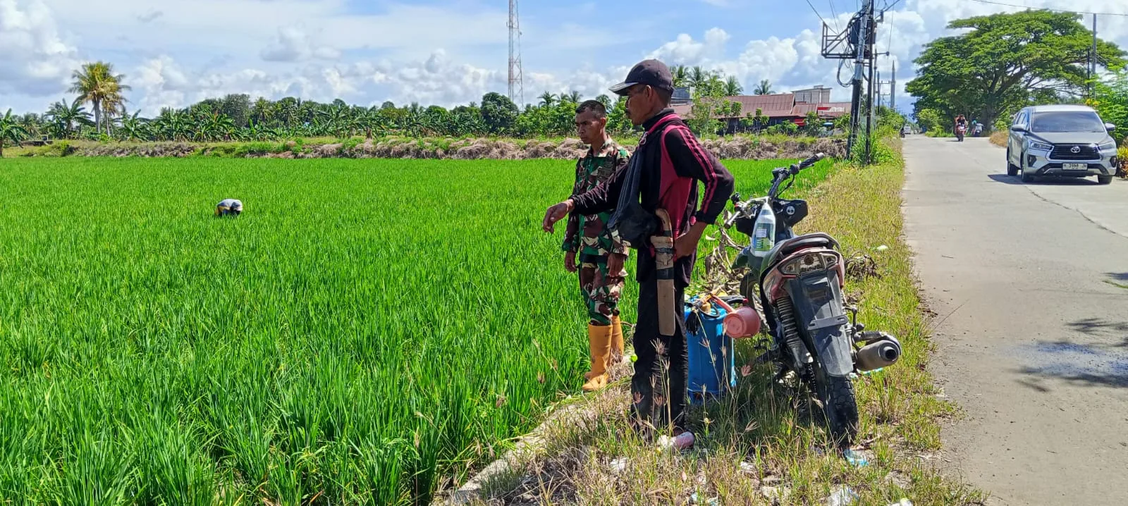 Dalam kesempatan tersebut, Serka Sangkala juga memberikan motivasi dan semangat kepada para petani agar terus merawat tanaman padi dengan optimal. Ia menegaskan bahwa pendampingan yang dilakukan Babinsa merupakan bentuk kepedulian TNI dalam mendukung program ketahanan pangan nasional.