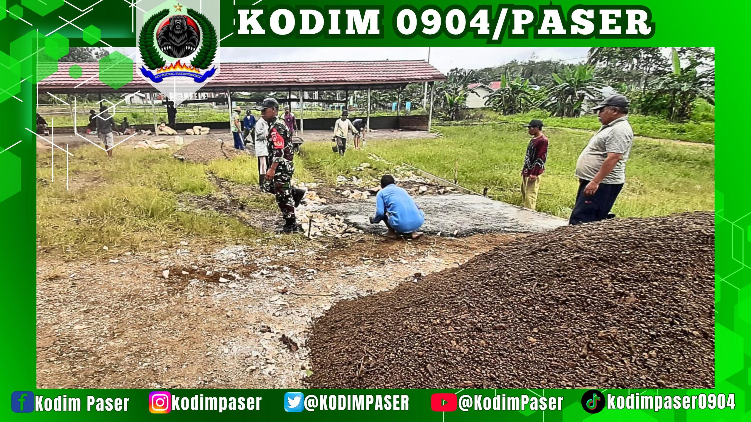 Kodim 0904/Psr, Korem 091/ASN, Kodam VI/Mlw – Babinsa Desa Sekuan Makmur, Sertu Rusbiyanto melaksanakan giat gotong royong bersama warga sekitar untuk pembuatan tempat parkir sepeda motor di Masjid Al-Ikhlas RT.04, Desa Sekuan Makmur, Kec. Muara Komam, Kab.Paser. Selasa (3/6/2025)