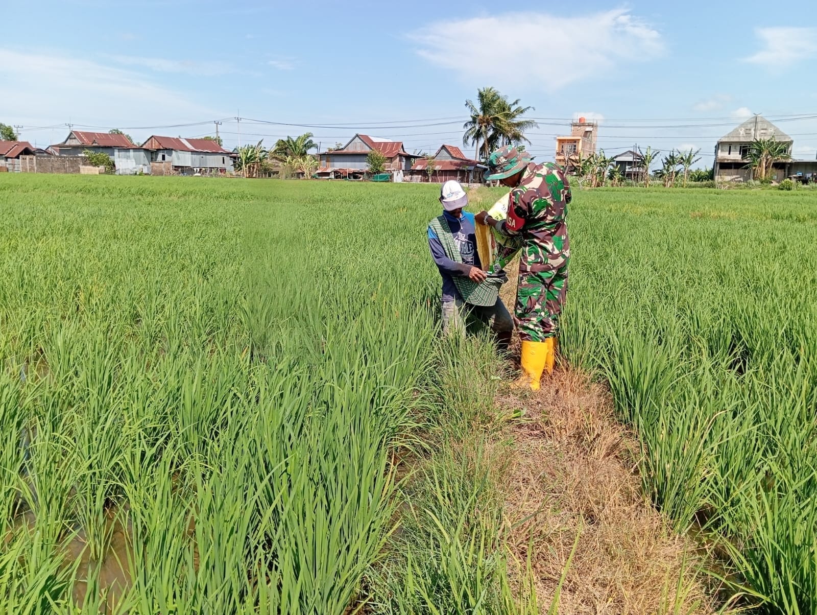 Jaga Tanaman Tetap Subur Babinsa Kodim 1404/Pinrangb Bantu Petani Pupuk Tanaman Padi