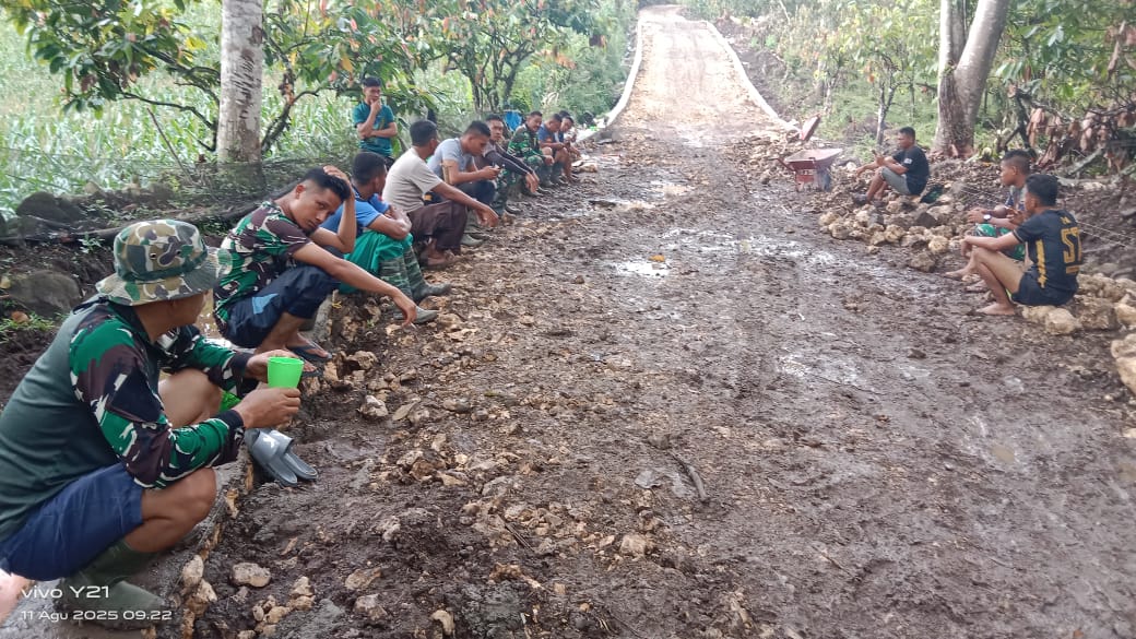 “Kebersamaan seperti inilah yang menjadi kekuatan utama dalam setiap program TMMD. Bukan hanya membangun fisik, tapi juga membangun semangat gotong royong dan persaudaraan,” ujar Serma Munawir salah satu anggota Satgas TMMD.
