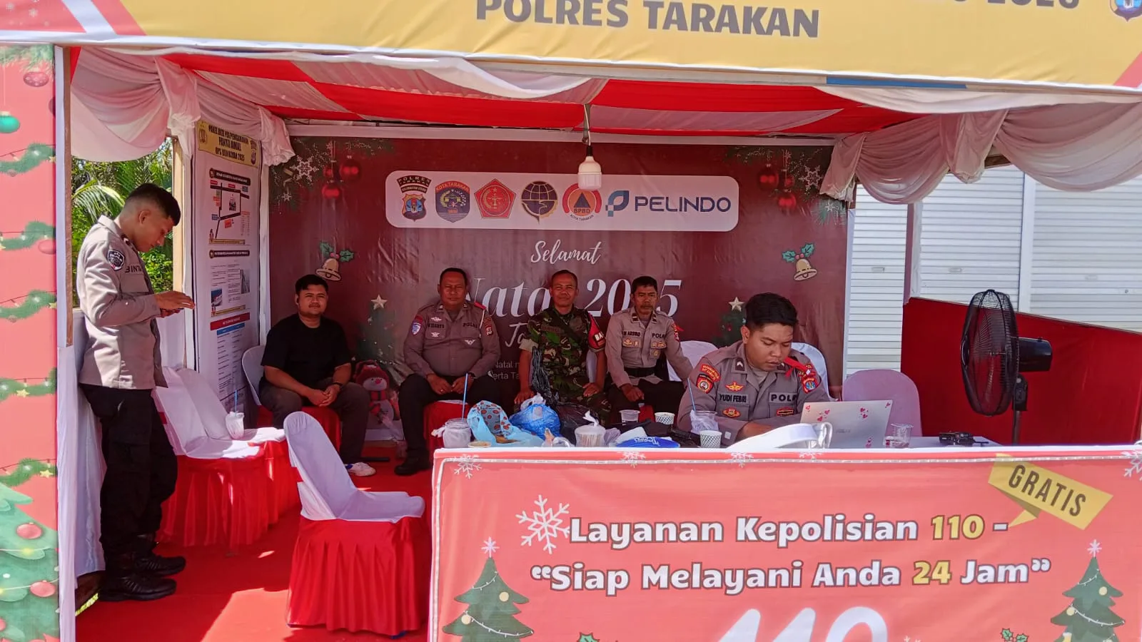 Tarakan – Guna menciptakan suasana yang aman dan kondusif dalam menyambut perayaan Natal 2025 dan Tahun Baru 2026, aparat gabungan TNI-Polri, Satpol PP, Damkar, Dinas Perhubungan, dan Dinas Kesehatan telah meningkatkan pengamanan di berbagai titik strategis diwilayah Kota Tarakan,Minggu (21/12/2025).
