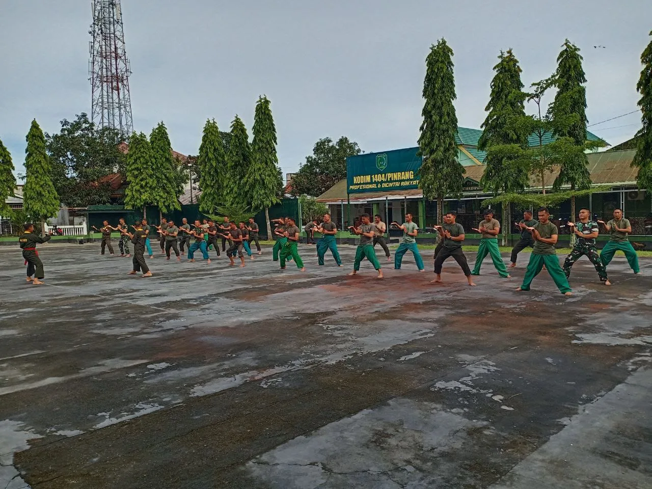 Pinrang_ Dalam rangka meningkatkan kemampuan bela diri prajuritnnya, Kodim 1404/Pinrang secara rutin melaksanakan latihan Pencak Silat Militer (PSM) yang dipusatkan di lapangan upacara Makodim 1404/Pinrang, Jum’at (05/12/2025).