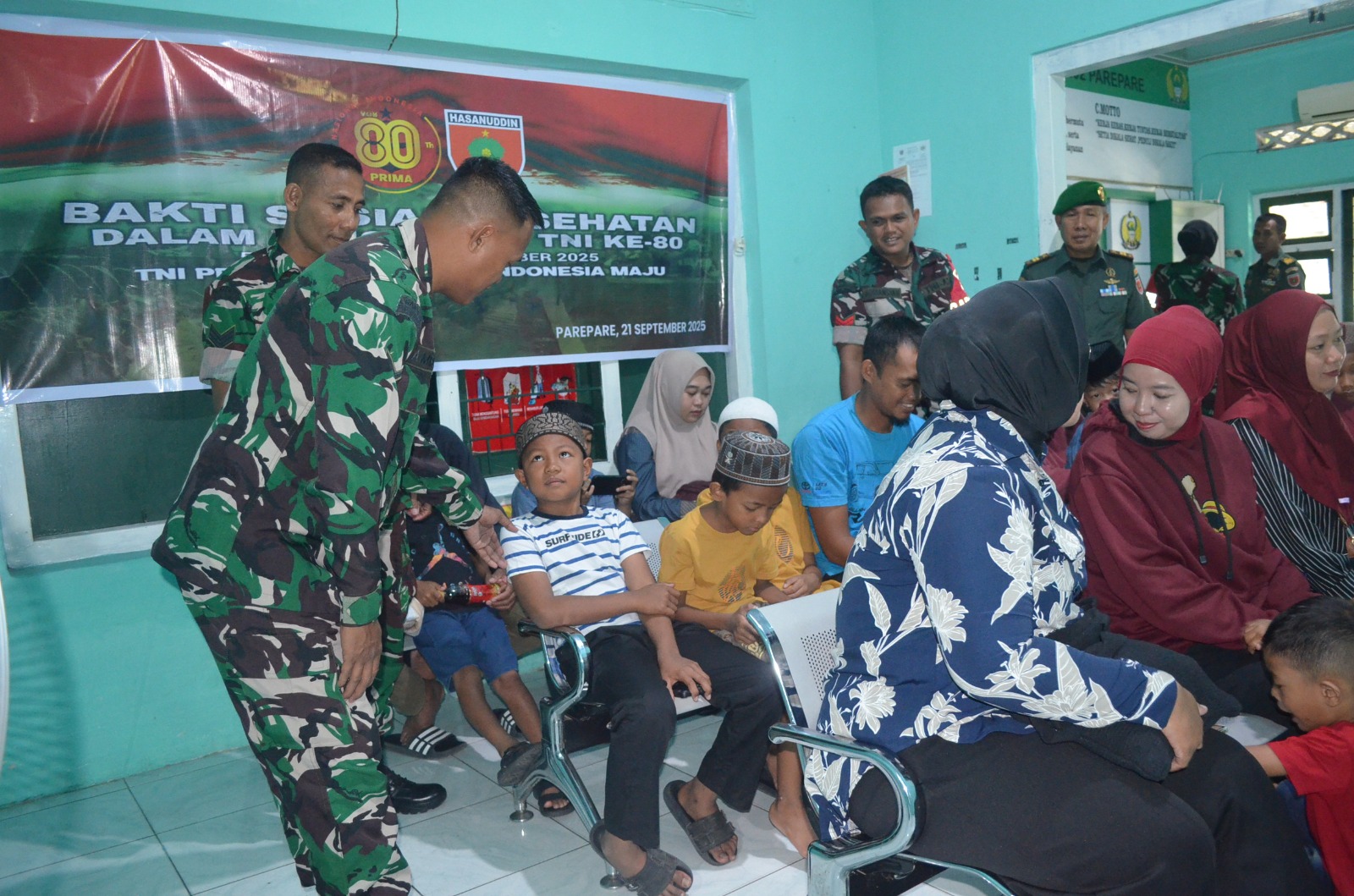 KODIM 1405/PAREPARE – Sebagai wujud kepedulian TNI dalam memperingati HUT TNI ke-80, Kodim 1405/Parepare melakukan kegiatan sosial pengobatan gratis dan sunatan untuk masyarakat, di Polkes Denkesyah 07.04.04. Parepare, Kelurahan Ujung Baru, Kecamatan Soreang, Kota Parepare. Minggu (21/09/2025)