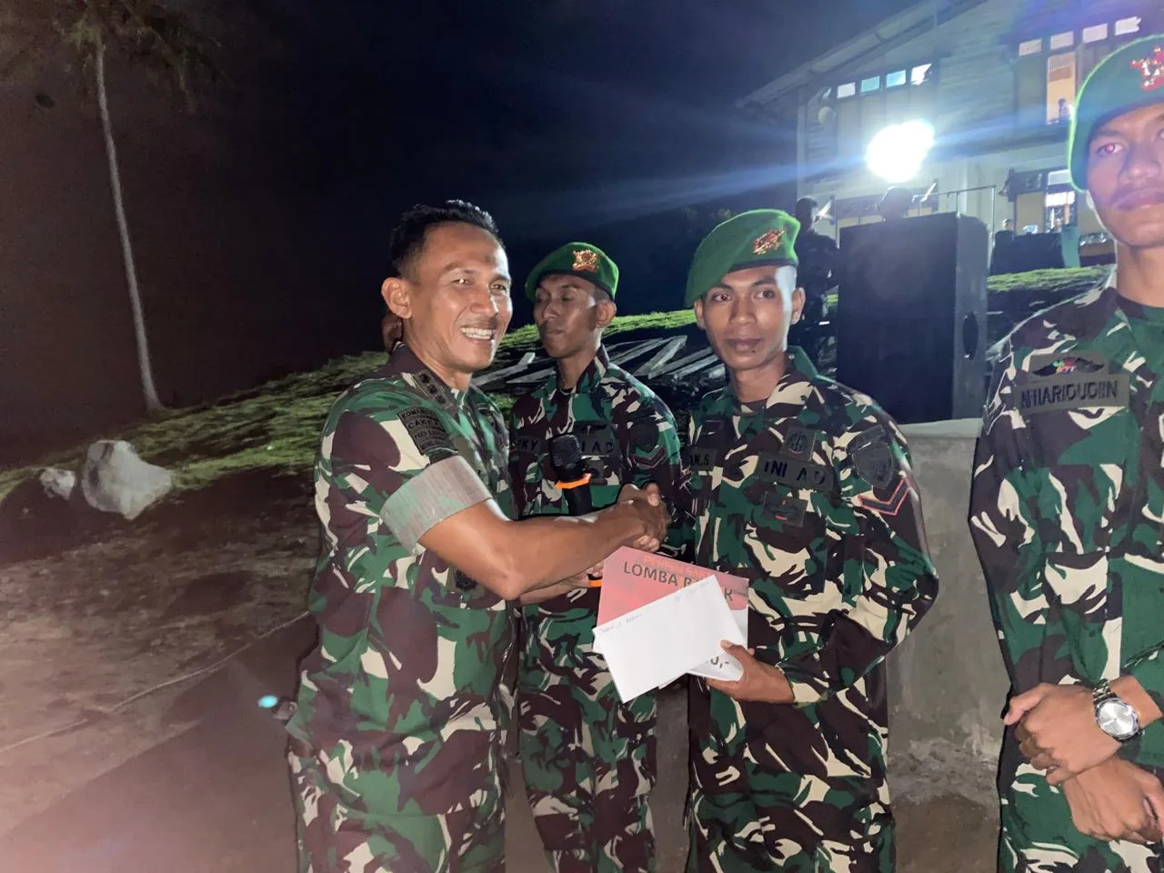 Dompu – 1/1/2026 Suasana malam pergantian tahun di Lapangan Mako Brigif TP/31/PS berlangsung meriah dan penuh makna ketika Komandan Brigif TP/31/PS memberikan apresiasi serta hadiah kepada para prajurit Denma Brigif TP/31/PS dan prajurit Yon TP/875/SYP atas dedikasi dan kinerja mereka sepanjang tahun 2025.