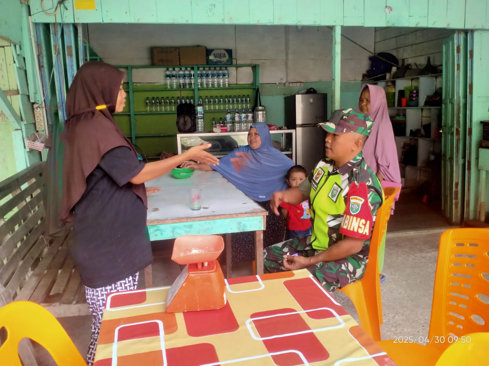 Komsos dilakukan di salah satu warung makan milik salah seorang warga, dalam komsos tersebut, Babinsa mengimbau kepada para ibu-ibu di agar bisa menjaga kebersihan dan kesehatan di lingkungan masing-masing.