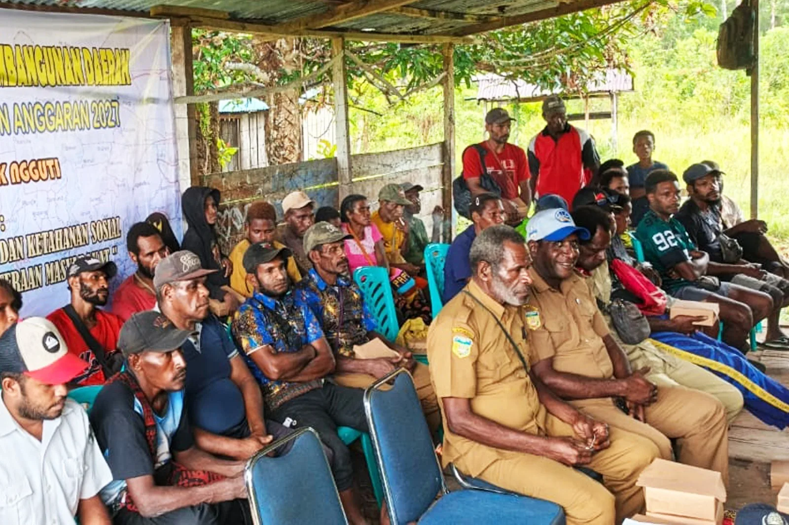 Turut hadir dalam kegiatan tersebut Kadistrik Ngguti Yansen T.D. Regoy, S.STP, Kapospol Ngguti Briptu Apul Purba, para Kepala Kampung se-Distrik Ngguti, serta perwakilan Masyarakat.