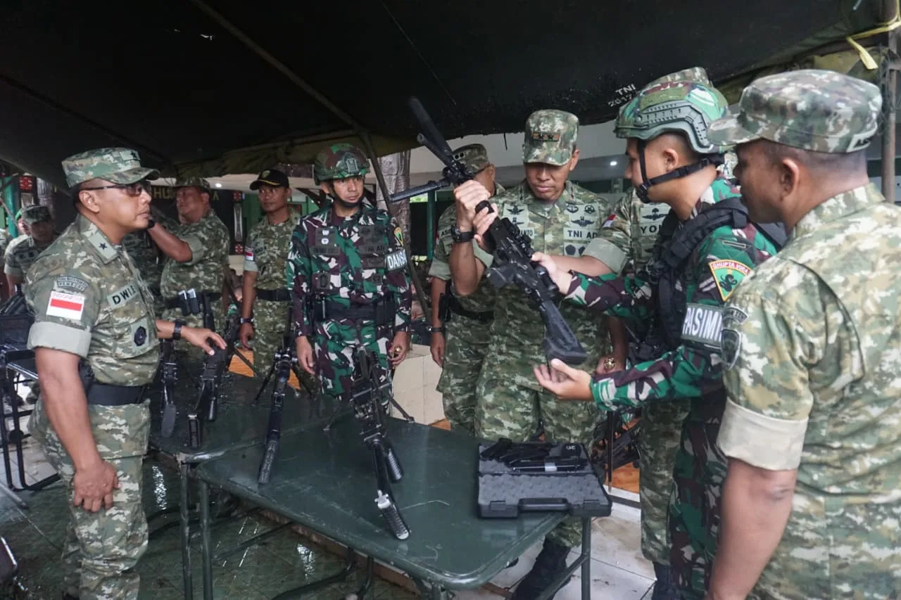 Setelah menerima paparan, Pangdam melakukan inspeksi mendalam terhadap perlengkapan perorangan dan alat utama sistem persenjataan (Alutsista). Beliau menekankan pentingnya tanggung jawab dalam merawat senjata serta perlengkapan operasional yang dibekalkan negara, serta mengingatkan prajurit untuk senantiasa menjaga kondisi kesehatan sebagai faktor kunci kelancaran tugas.