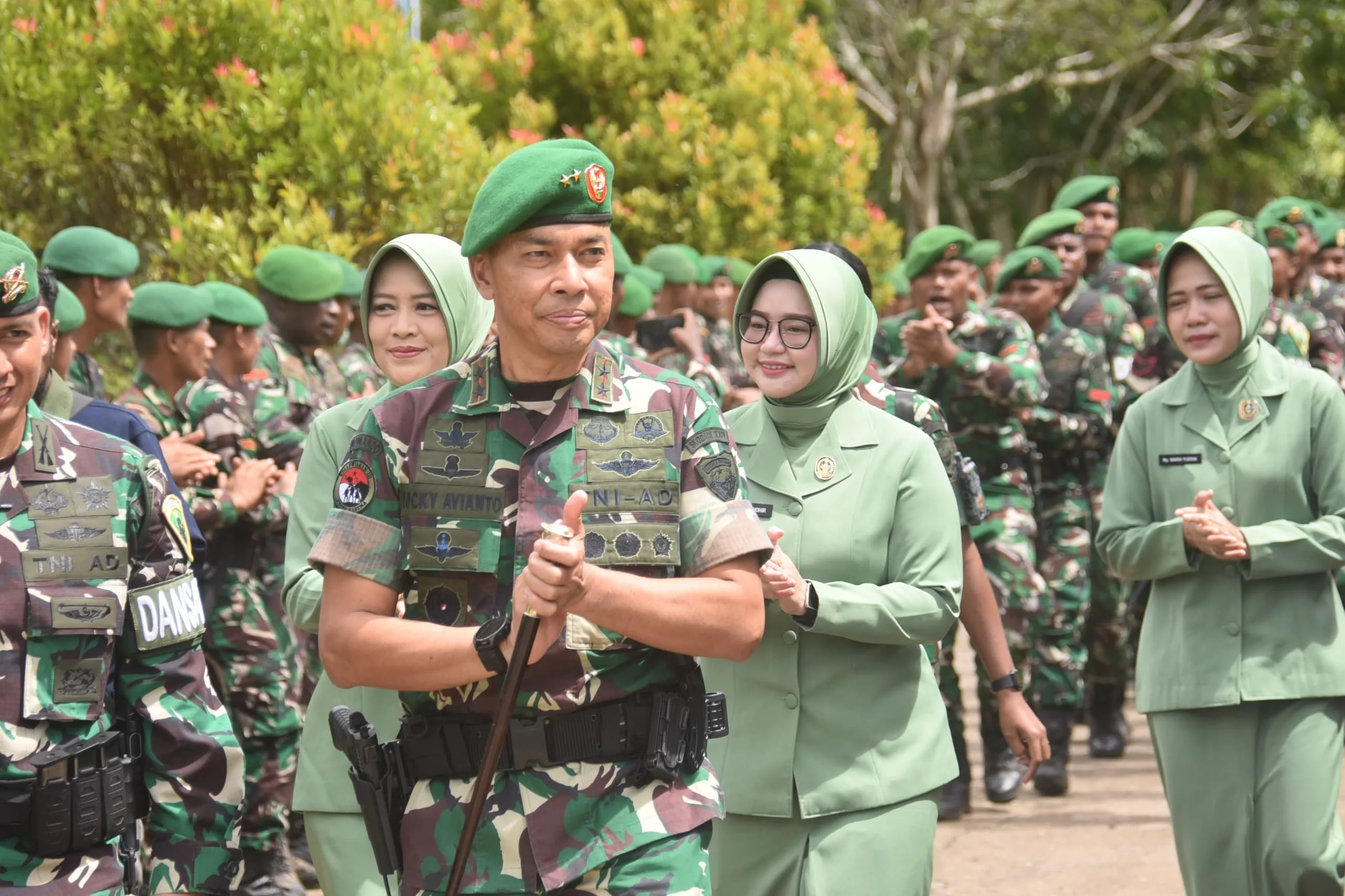 Selain kepada prajurit, Pangdam menyampaikan apresiasi kepada keluarga besar Yonif 757/GV, khususnya para istri dan keluarga yang ditinggalkan, atas dukungan dan doa yang menjadi kekuatan moral bagi prajurit dalam melaksanakan tugas negara.