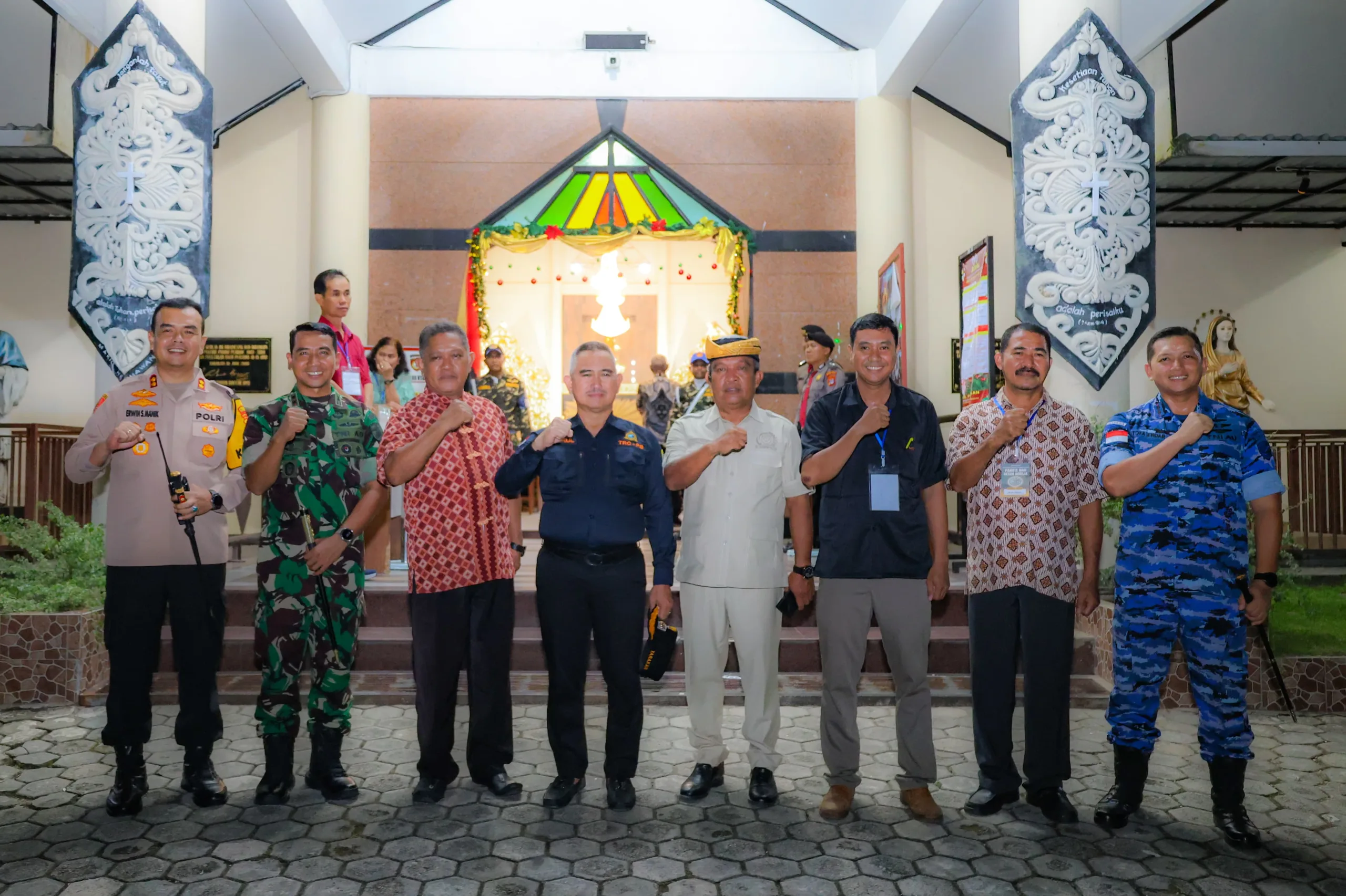 TARAKAN – Komandan Kodim 0907/Trk Letkol Inf Syaiful Arif,S.Sos.,M.Han bersama Walikota Tarakan dr.Khaerul,M.Kes,Kapolres AKBP Erwin S. Manik serta Dansatradar 204 Trk Letkol Lek Tofa Endar Cahyono melaksanakan pengecekan kegiatan pengamanan ibadah Natal di wilayah kota Tarakan,Rabu malam (24/12/2025).