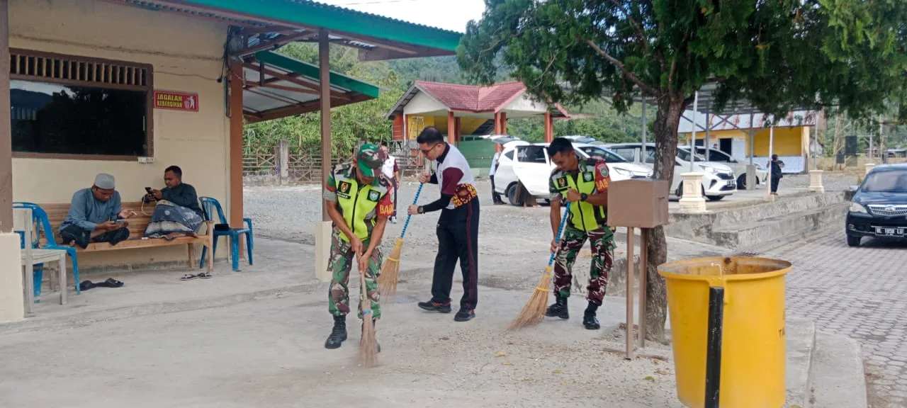 Kegiatan ini difokuskan pada pembersihan rumput liar, sampah di area halaman, serta penataan lingkungan sekitar masjid agar jamaah merasa nyaman saat beribadah. Sinergi TNI–Polri tersebut sekaligus menjadi wujud nyata kedekatan aparat dengan masyarakat, khususnya dalam menjaga fasilitas umum yang menjadi pusat kegiatan keagamaan warga.