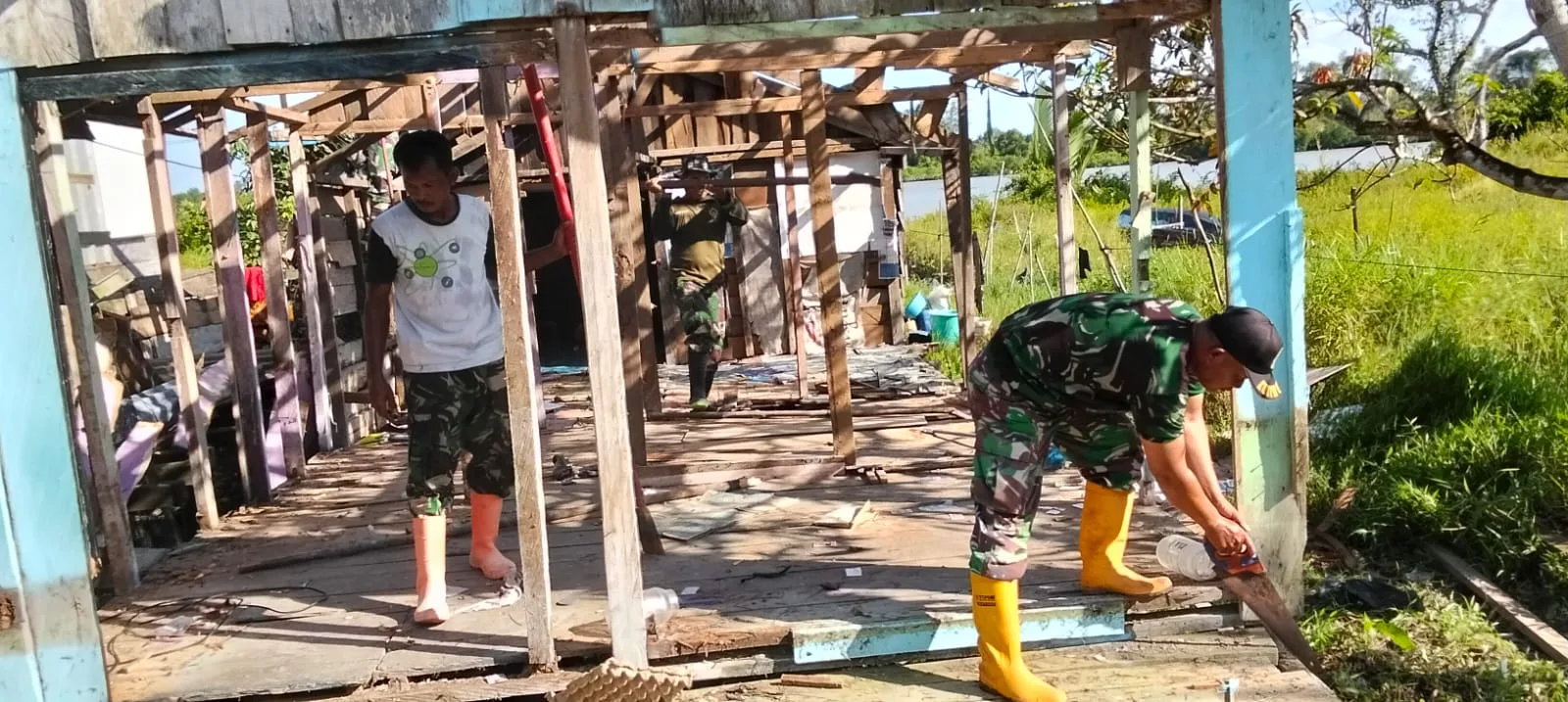 Pembangunan RTLH TMMD Dimulai, Rumah Ibu Nurhazizah Masuki Tahap Pembongkaran