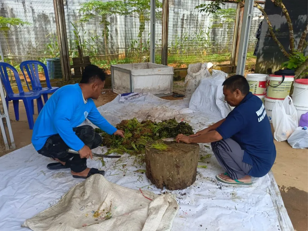 Dalam pelaksanaannya, Warga Binaan terlebih dahulu mencacah limbah dapur menjadi ukuran kecil agar lebih cepat terurai. Selanjutnya bahan tersebut dicampur dengan dedak, arang sekam, kapur pertanian, serta pupuk kandang kambing sebagai bahan pendukung dalam proses pengomposan.