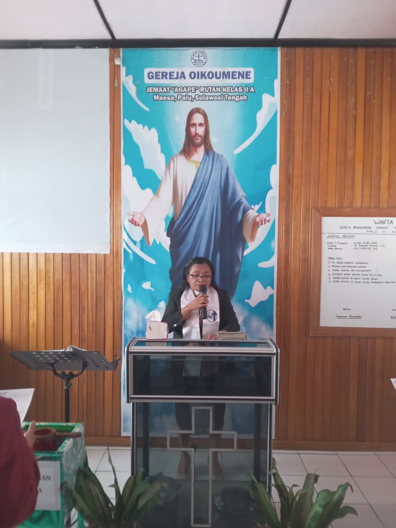 kegiatan ibadah ini dipimpin ini oleh Pdt. Marlina Mohimpi. S.Th dari Gereja Kristen Sulawesi Tengah (GKST) Jemaat Effatha Palu dengan tema ibadah “Pertobatan dan Pengampunan” dalam bacaan Matius 6 :11-12 kegiatan ibadah ini turut diawasi oleh anggota pengamanan yang bertugas.