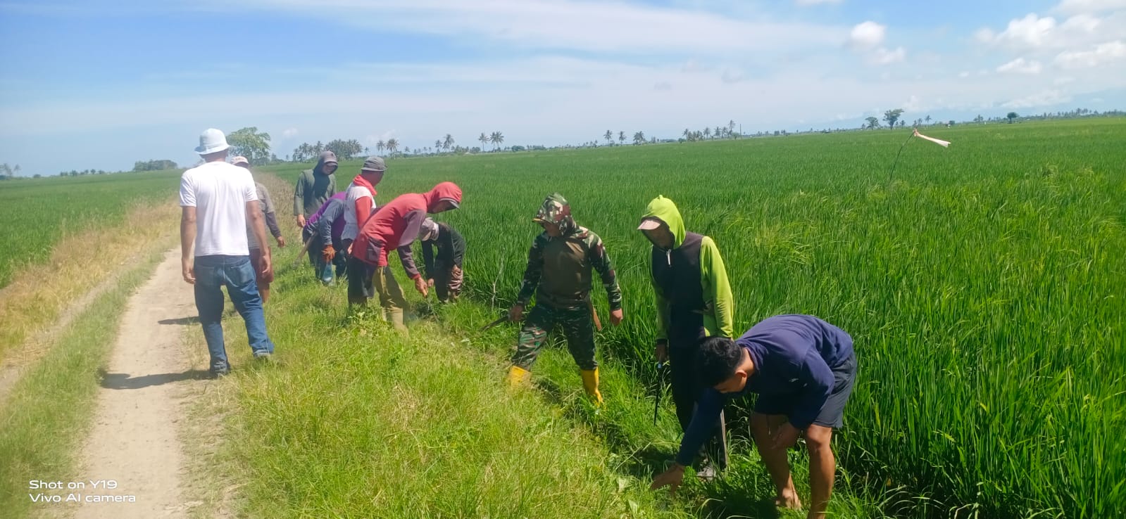 Danramil-02/Mattiro Sompe Kapten Inf Kaharuddin dalam kesempatan tersebut menyampaikan bahwa saat ini padi petani sedang tumbuh dan memerlukan air yang cukup, untuk itu saluran air yang sudah ditumbuhi rumput liar dan mengalami pendangkalan harus dibersihkan agar air lancar mengairi persawahan warga.