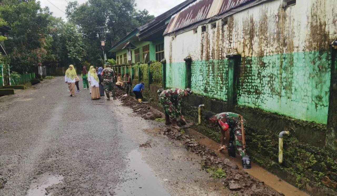 Para guru dan siswa terlihat antusias mengikuti kegiatan tersebut. Dengan semangat gotong royong, mereka bersama personel TNI membersihkan lumpur, sampah, serta memperlancar aliran air di sepanjang parit.