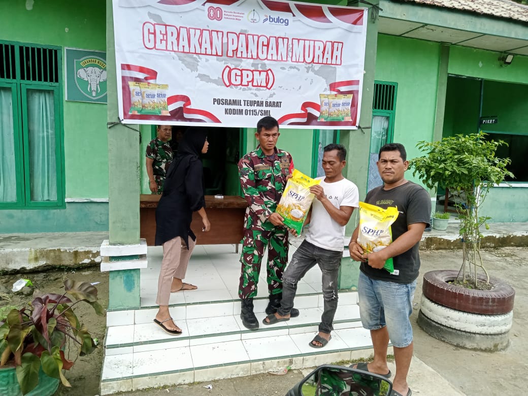 Simeulue – Personil Posramil Teupah Barat, Kodim 0115/Simeulue, Korem 012/Teuku Umar. Laksanakan Kegiatan Gerakan Pangan Murah Diwilayah, Kecamatan Teupah Barat, Kabupaten Simeulue. Senin (22/09/2025).