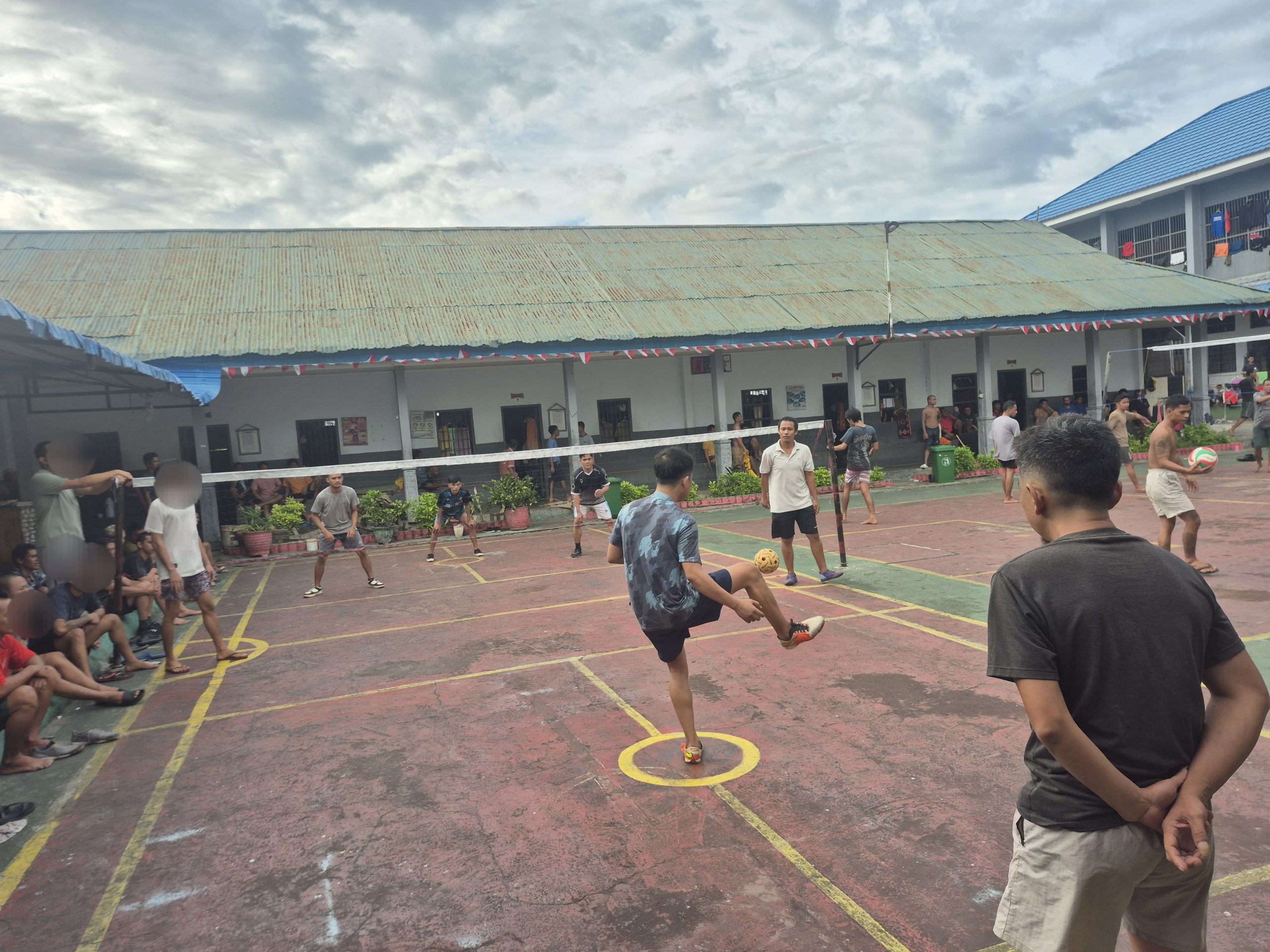 Palu, INFO_PAS – Semangat menyambut Hari Kemerdekaan ke-80 Republik Indonesia terasa hingga ke dalam Rumah Tahanan Negara (Rutan) Kelas IIA Palu. Ratusan Warga Binaan Pemasyarakatan (WBP) turut serta memeriahkan hari ulang tahun dengan mengadakan berbagai lomba, salah satunya adalah pertandingan sepak takraw, Rabu (13/8/2025). Acara ini berlangsung meriah di lapangan olahraga Rutan Palu dan menarik perhatian seluruh warga binaan yang hadir.