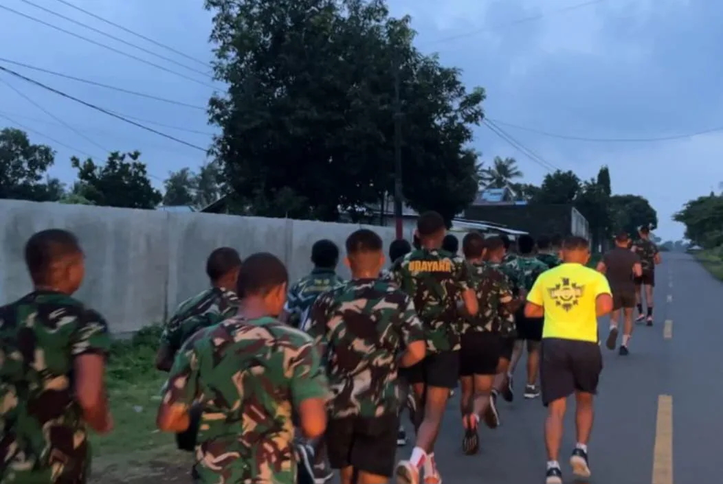 3. Prajurit Muda Denma Brigif TP 31/PS Konsisten Asah Kemampuan Fisik dengan Program Lari Pagi dan Sore di Wilayah Calabai.